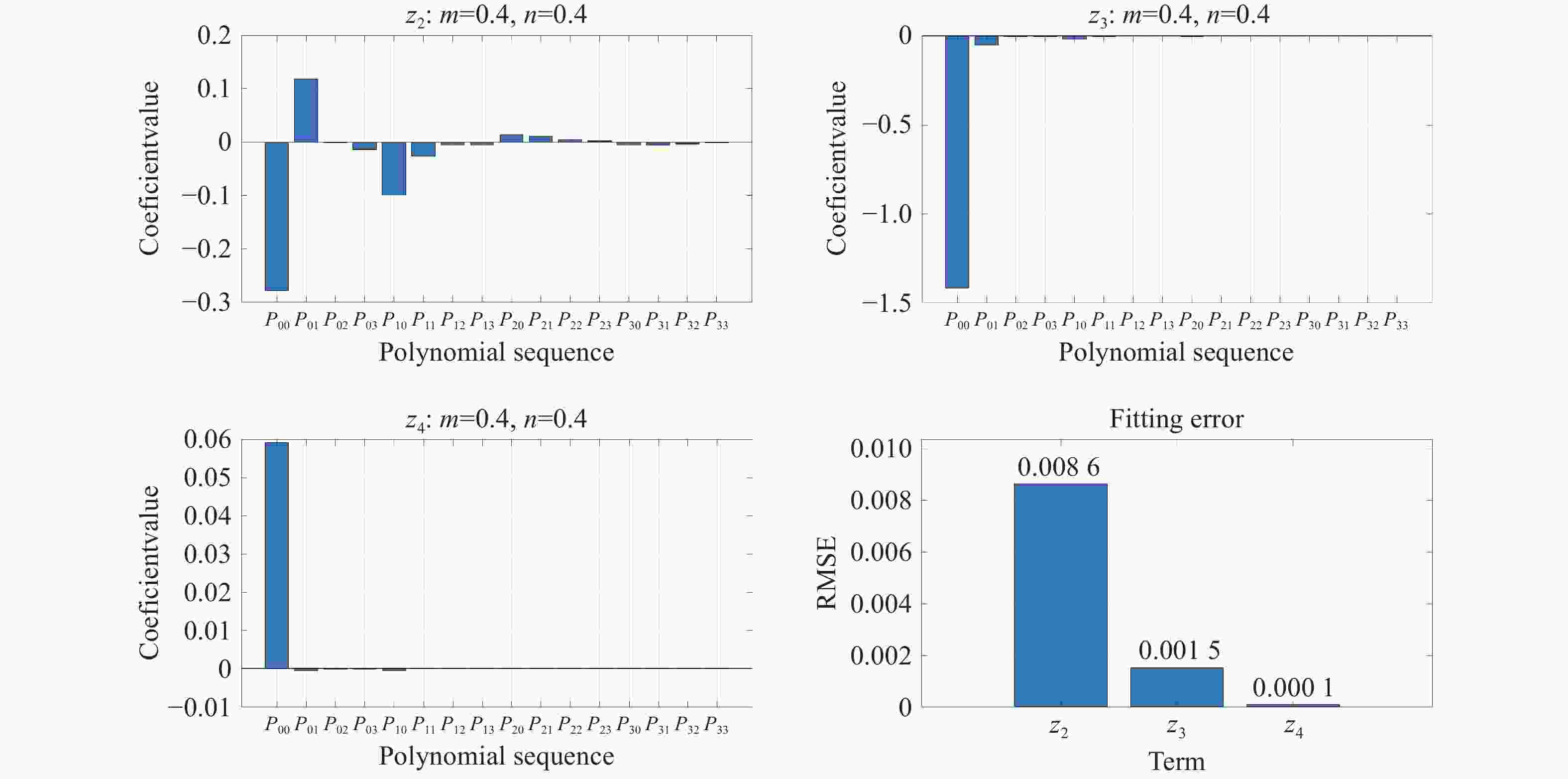 Figure 9.  Fitting coefficients and fitting errors of Z2–Z4
