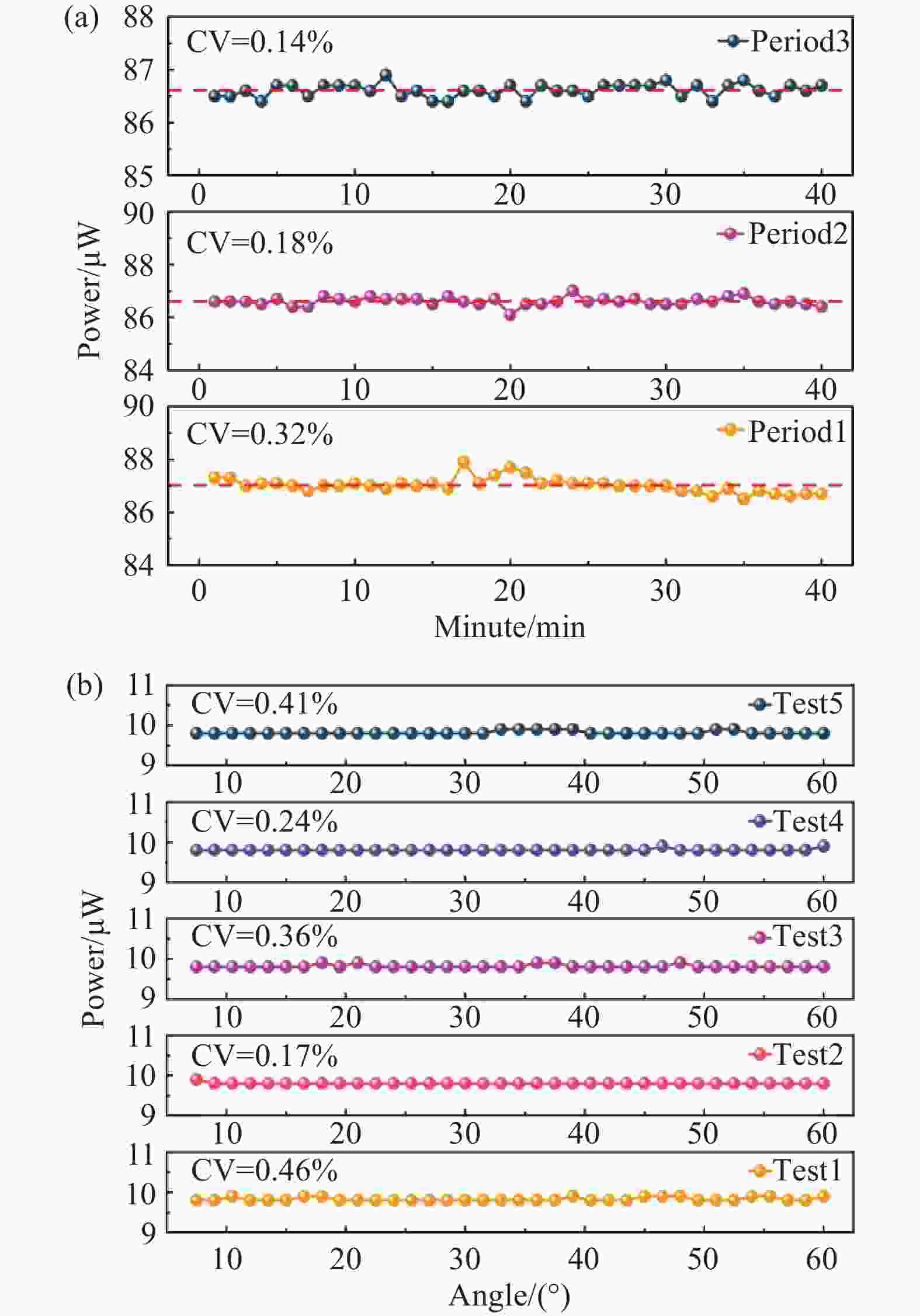 为研究表面等离激元纳米结构的微区域光学响应,本文研制了一套基于同轴转臂的微区域角分辨光谱测量系统。该系统设计了一种基于有限共轭构型的微区域远程激发与收集光路模型,实现了以32 μm直径的微区域光斑入射;搭建了基于同轴转臂的角分辨机械系统,实现了6.9° 至90° 的大范围定向角度激发。性能测试表明,系统稳定性高,最小角度分辨率达0.12°。通过对一维光栅和二维周期纳米结构的反射光谱采集实验,进一步验证了系统的可靠性,证明了微区域光斑所带来的优势,为微纳结构的角分辨光谱表征提供了有效的技术手段。
