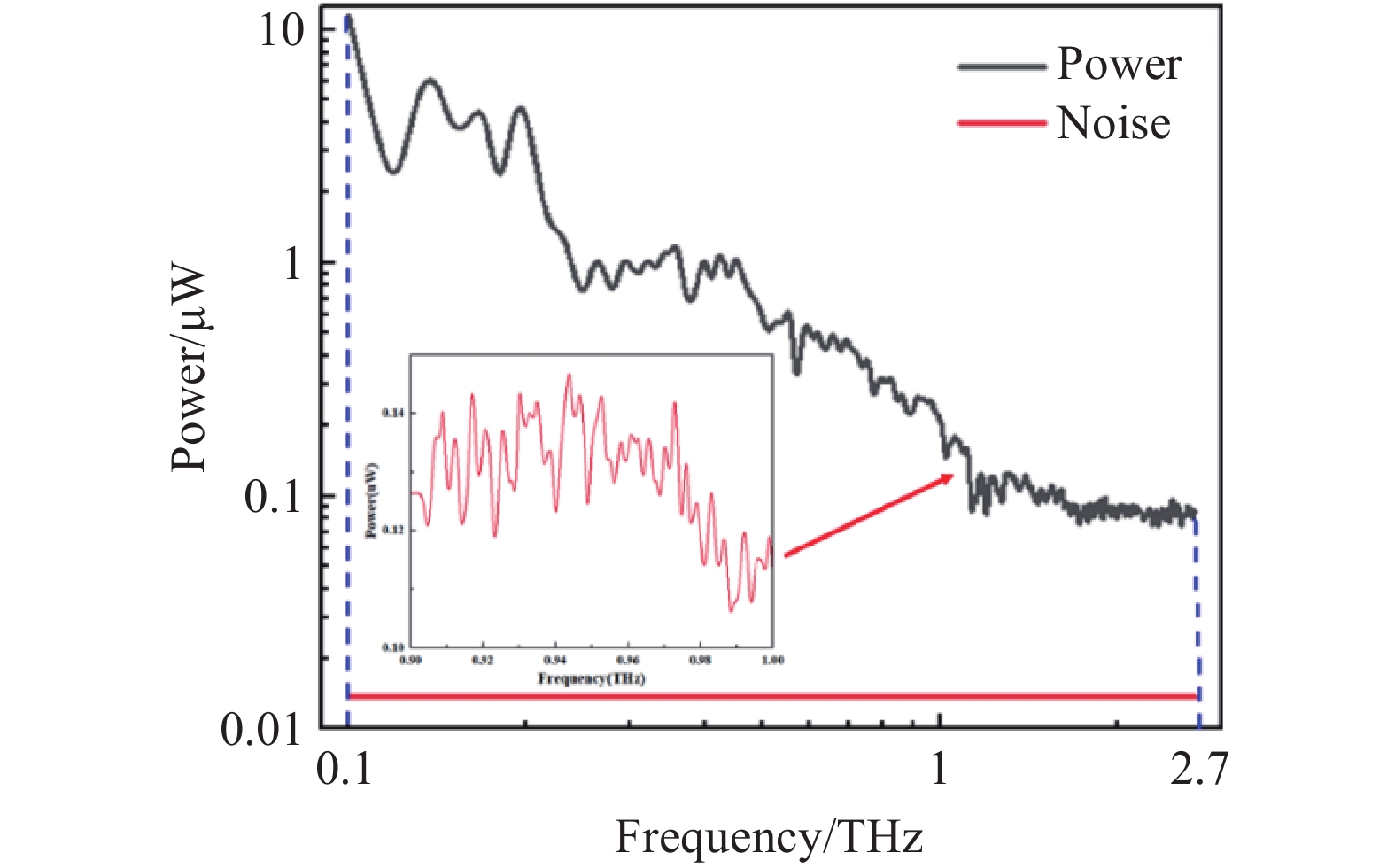 图 8  (a) 0.5 THz频率测试曲线;(b) 1 THz频率测试曲线