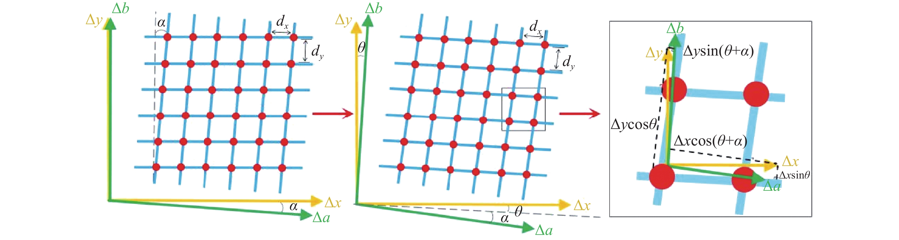 (xn,yn) θ(°) α(°) $ \rho $x(gr/mm) $ \rho $y(gr/mm) (1,5) 0.48016 − 1.07329 1199.99228 1199.90331 (2,5) 0.48820 − 1.08118 1199.99563 1199.90466 (3,5) 0.48496 − 1.07812 1200.02361 1199.90413 (4,5) 0.48669 − 1.07981 1200.02964 1199.90443 (5,5) 0.48652 − 1.07963 1200.01899 1199.90439 (5,4) 0.48654 − 1.07839 1200.01872 1199.87662 (5,3) 0.48653 − 1.07917 1200.01889 1199.88735 (5,2) 0.48668 − 1.06947 1200.01681 1199.88468 (5,1) 0.48653 − 1.07342 1200.01767 1199.87282 Average value 0.48587 − 1.07694 1200.01469 1199.89360 Standard deviation 0.002158 0.003702 0.01171085 0.01322980 Table 2. The results of the measurement of the 2D grating calibration area