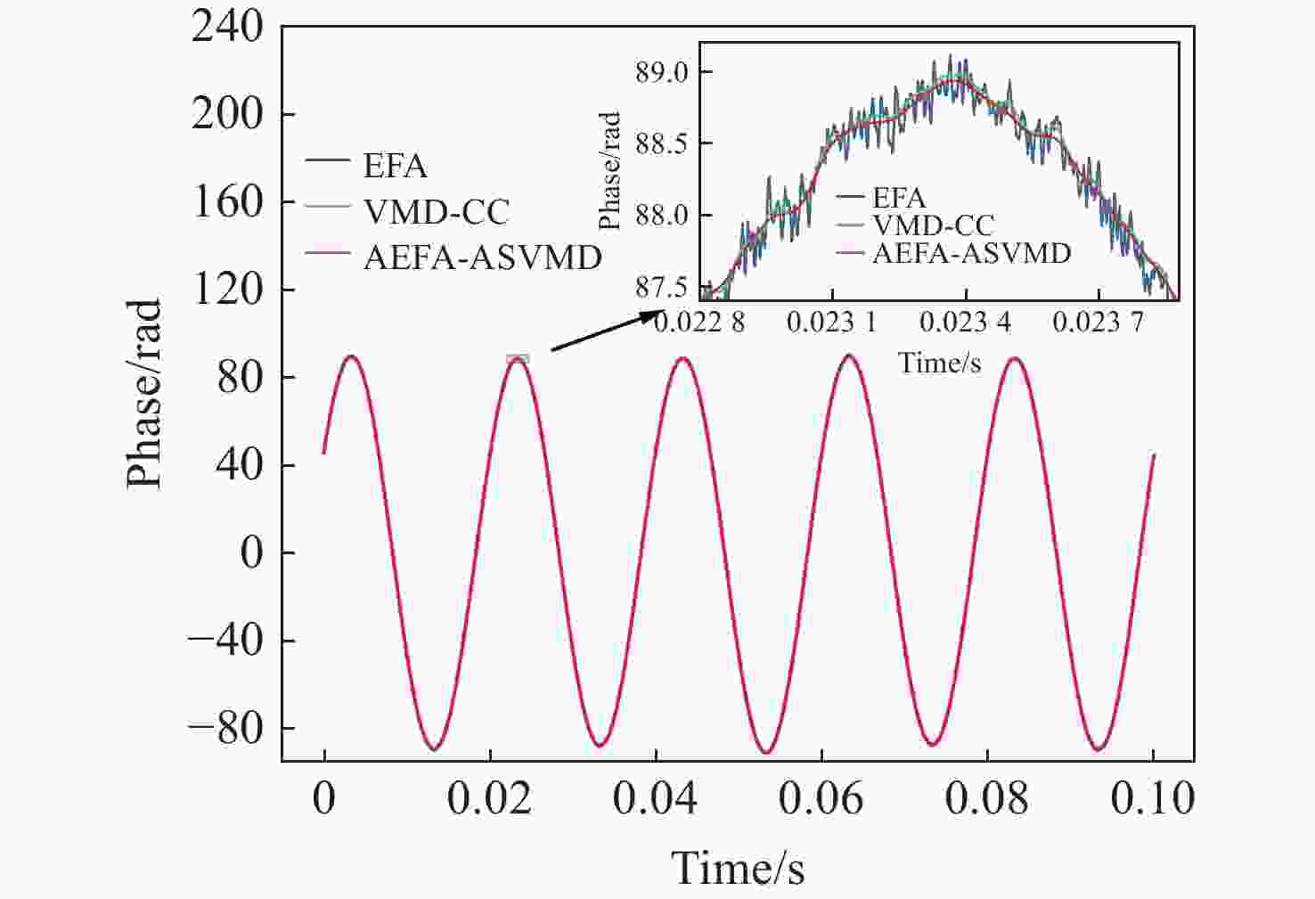 Algorithm THD (%) SNR (dB) EFA 0.1733 52.9978 AEFA 0.1716 54.2644 Table 4. The CC between decomposition results and experimental signal