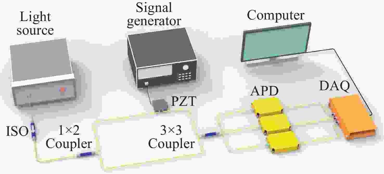 针对现有的噪声抑制策略无法同时降低固有系统噪声和外部环境噪声的问题,本文提出了一种基于改进椭圆拟合算法(Ameliorated Ellipse Fitting Algorithm, AEFA)和自适应连续变分模分解(Adaptive Successive Variational Mode Decomposition, ASVMD)的噪声抑制方法。该算法通过AEFA去除干涉信号中与直流、交流分量紧密耦合的系统噪声,得到仅含环境噪声的相位信号;随后针对该相位信号,采用ASVMD实现环境噪声的高效抑制,并通过排列熵对ASVMD的分解结果进行优化;最终利用相关系数从优化后的分解结果中过滤出纯净的目标相位信号。实验结果表明,AEFA和ASVMD相结合可有效地抑制系统和环境噪声。在处理50 Hz振动信号时,所提出的方案实现了17.81 dB的降噪和35.14 μrad/√Hz的相位分辨率。鉴于其出色的噪声抑制性能,该方案在高性能干涉传感系统中具有巨大的应用潜力。