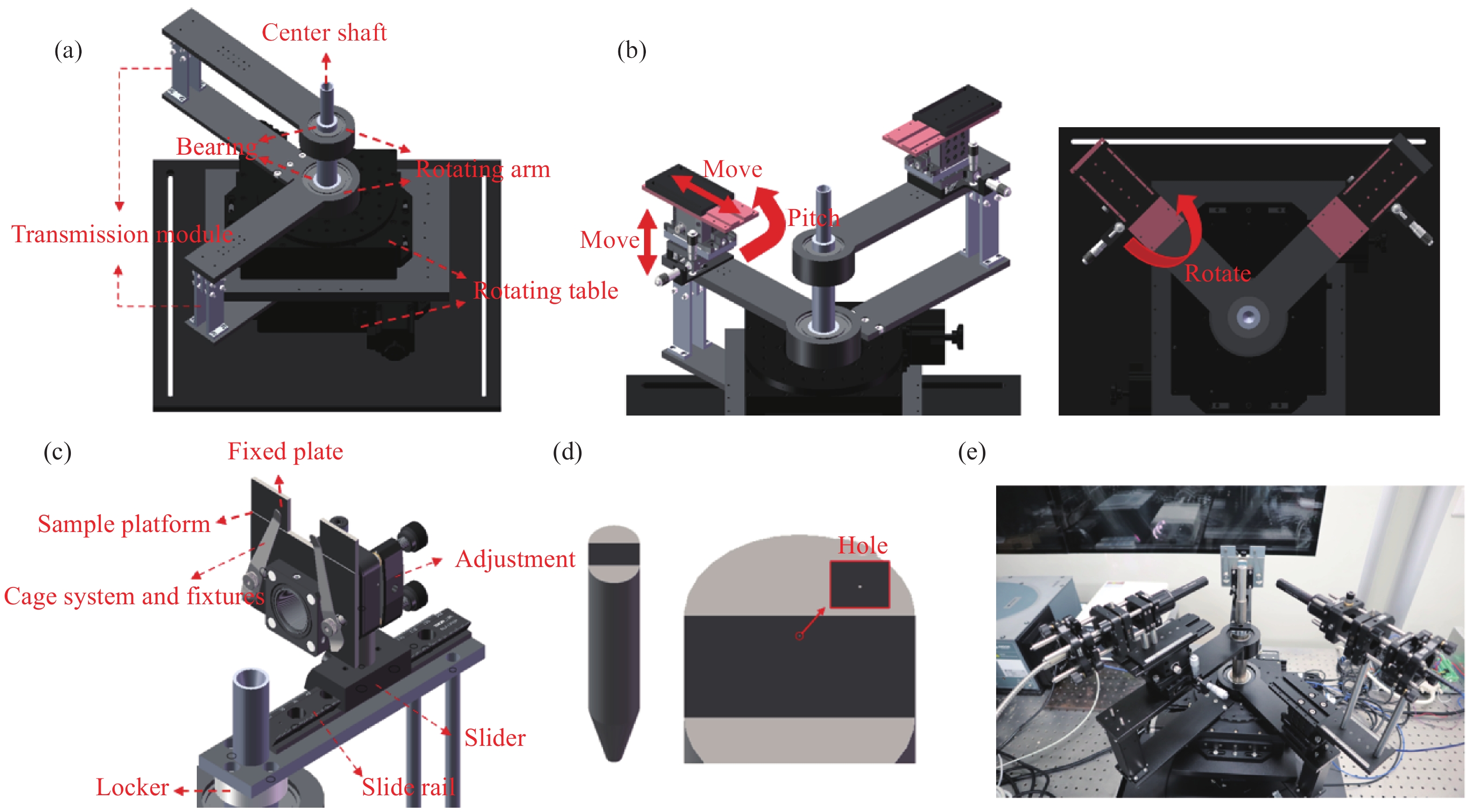 To study the optical response of micro-area in surface plasmon nanostructures, we develop a micro-area angle-resolved spectroscopy measurement system based on a coaxial rotating arm. The system adopts a micro-area remote excitation and collection optical path model based on a finite conjugate configuration, enabling an incident micro-area spot with a diameter of 32 μm. In addition, an angle-resolved mechanical system based on a coaxial rotating arm is constructed, realizing large-range directional angular excitation from 6.9° to 90°. Performance tests show that the system exhibits high stability, with a minimum angular resolution of 0.12°. Through the reflection spectrum collection experiments on one-dimensional gratings and two-dimensional periodic nanostructures, the reliability of the system is further verified. The results demonstrate the advantages of the micro-area spot, which provide an effective technical means for the angle-resolved spectroscopy characterization of micro and nanostructures.