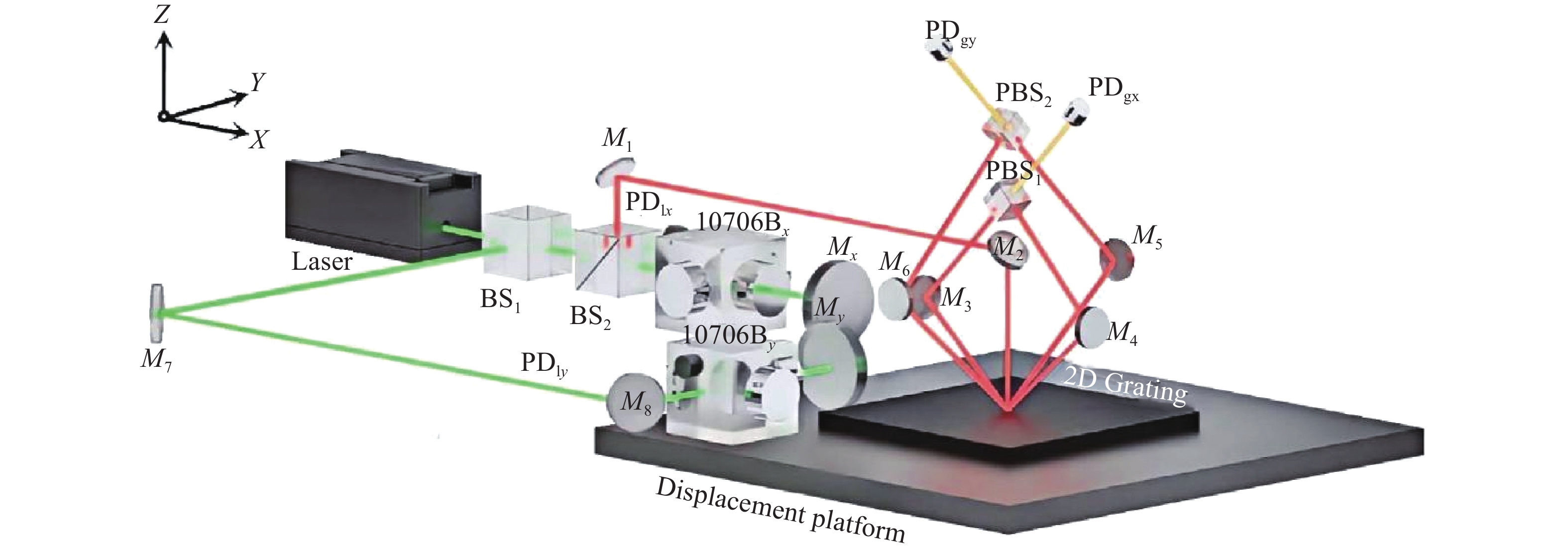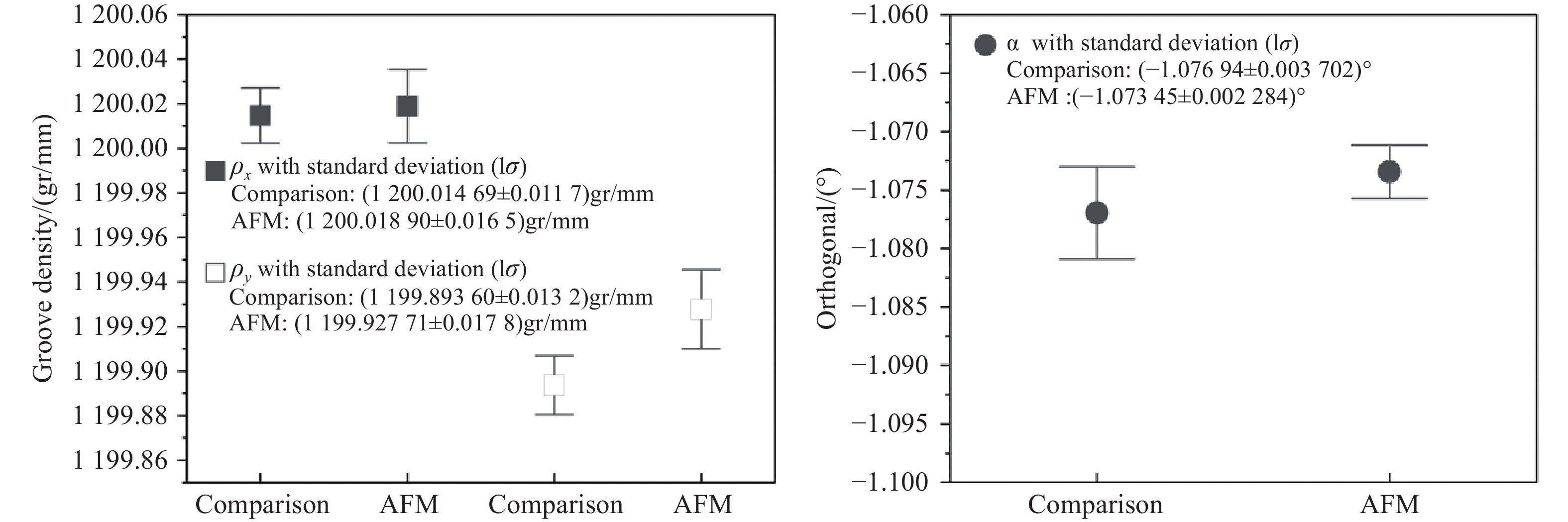 The two-dimensional grating serves as a critical component in plane grating interferometers for achieving high-precision multidimensional displacement measurements. The calibration of grating groove density and orthogonality error of grating grooves not only improves the positioning accuracy of grating interferometers but also provides essential feedback for optimizing two-dimensional grating fabrication. This study proposes a method for simultaneous calibration of these parameters using orthogonal heterodyne laser interferometry. A two-dimensional grating interferometer is built with the grating to be measured, and a biaxial laser interferometer provides a displacement reference for it. The phase mapping relationship between grating interference and laser interference is established. The interference phase information obtained by any two displacements can simultaneously solve the above three parameters and obtain the grating installation error. The feasibility of the proposed method is verified by using a 1200 gr/mm two-dimensional grating. The standard deviation of the grating groove density in the X and Y directions is 0.012 gr/mm and 0.014 gr/mm, respectively. The standard deviation of the orthogonality error of grating grooves is 0.004°, and the standard deviation of the installation error is 0.002°. Compared with the atomic force microscope method, the consistency of the grating groove density in the X and Y directions is better than 0.03 gr/mm and 0.06 gr/mm, and the orthogonality error of grating grooves is better than 0.008°. The experimental results show that the proposed method can be simply and efficiently applied to the calibration of the grating line parameters of the two-dimensional grating.