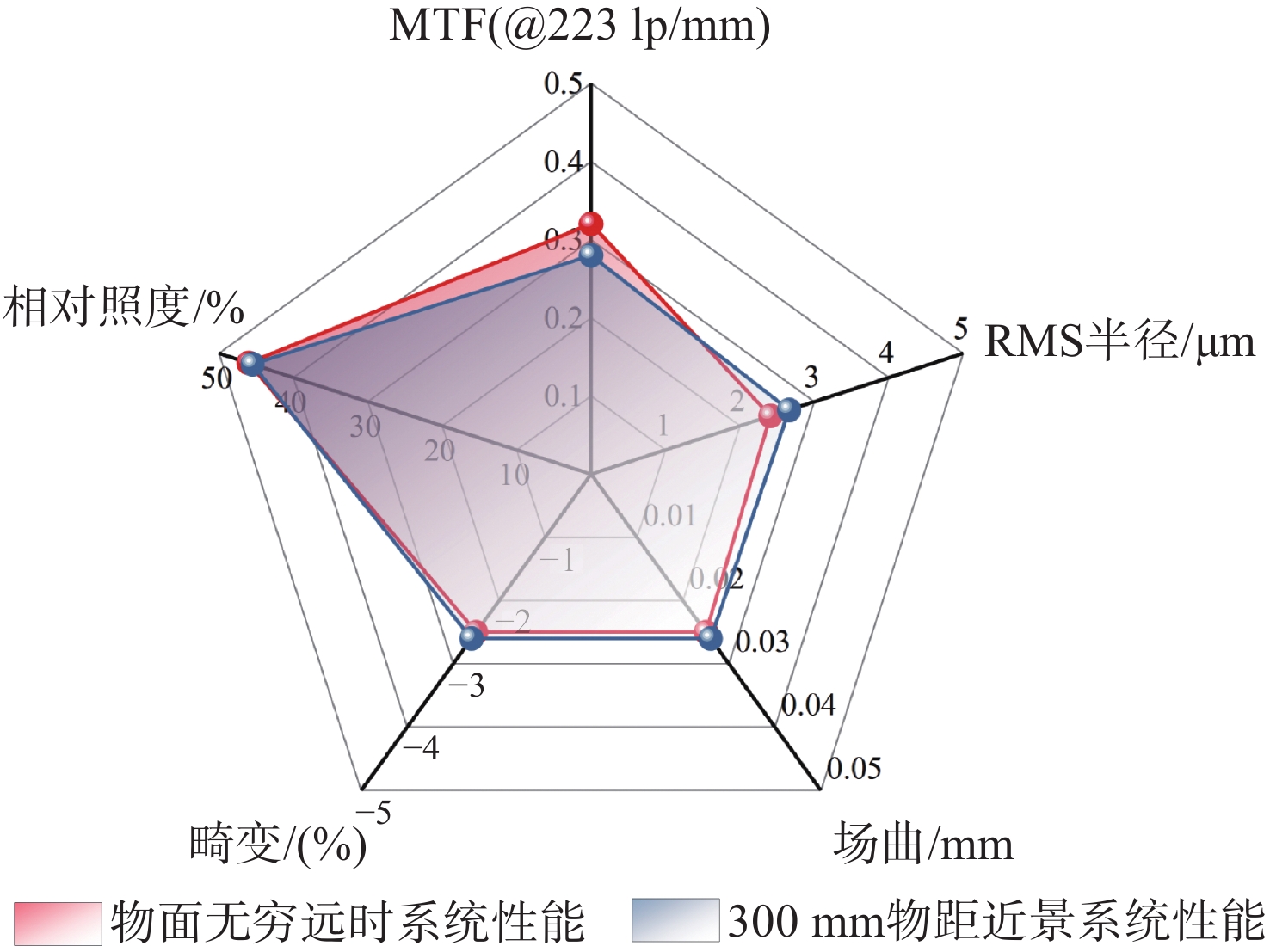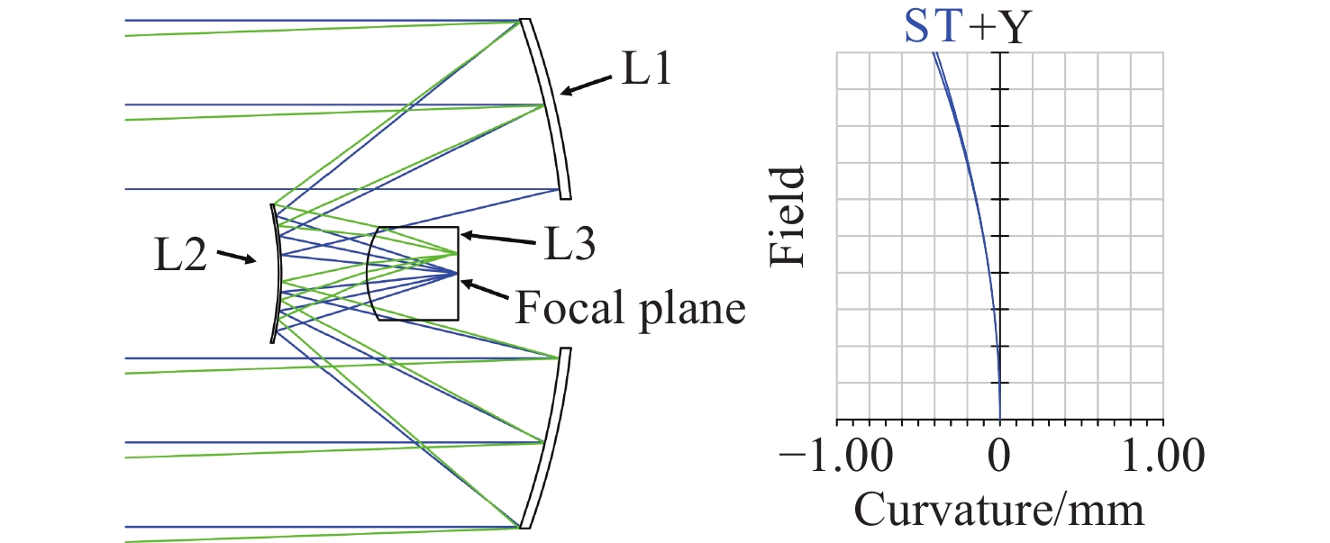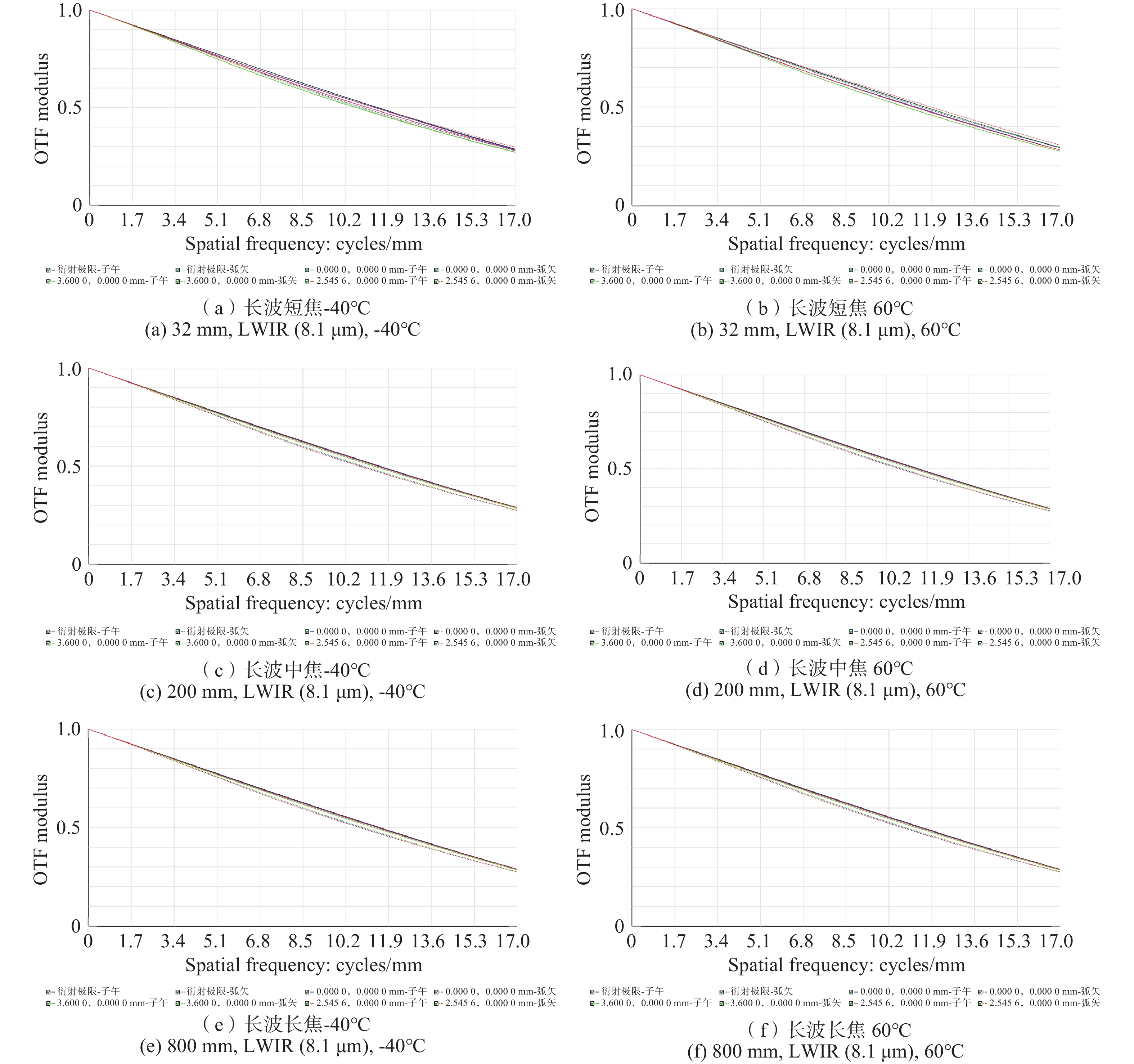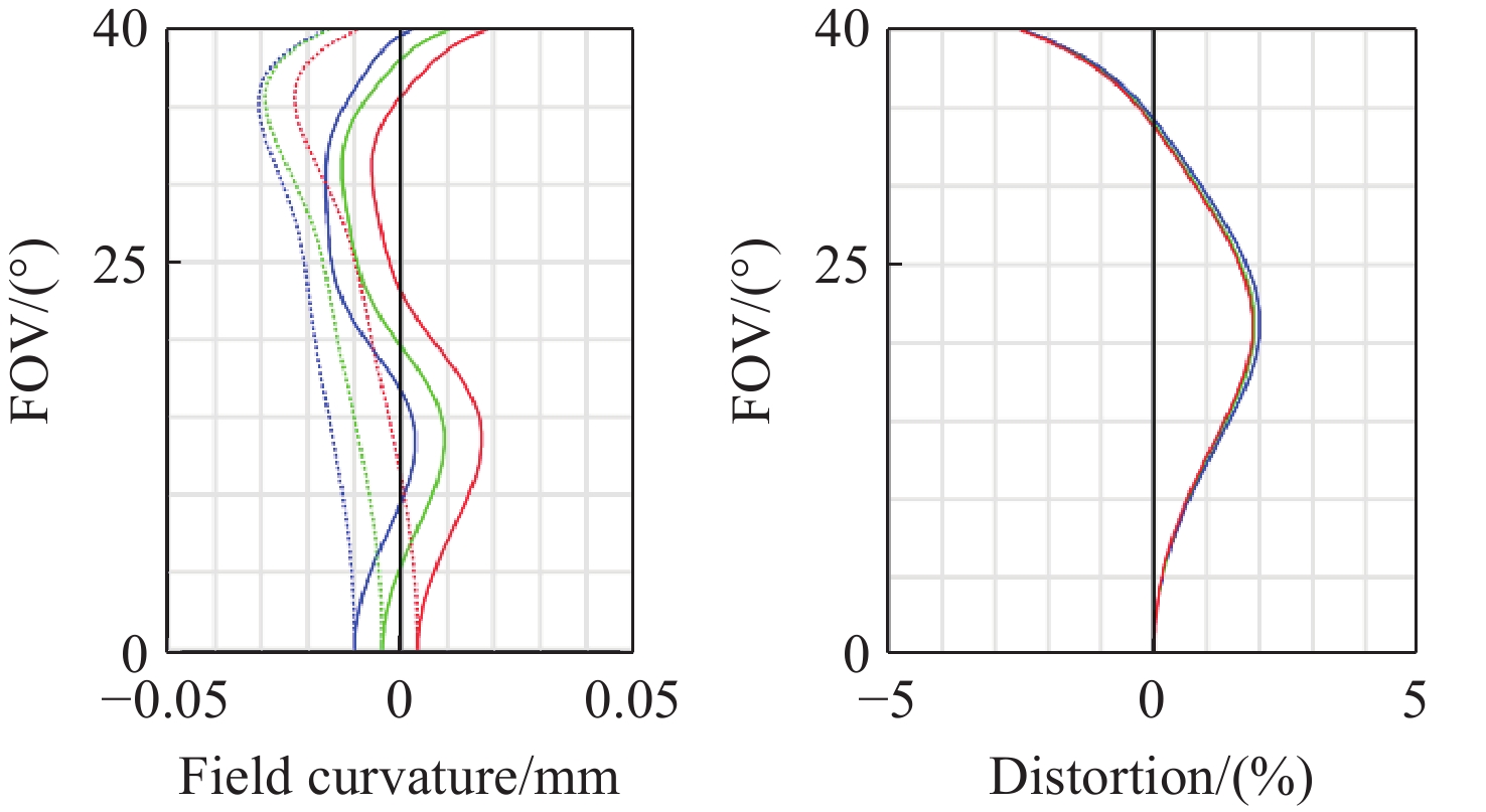 With the breakthrough progress of mid-wave and long-wave infrared hyperspectral imaging technology, the military hyperspectral imaging system, with its unique feature recognition capability and covert reconnaissance advantages, has demonstrated significant strategic value in the field of modern battlefield situational awareness. In this study, a dual-band Offner-type spectral imaging system operating in the mid-wave infrared (3.7−4.8 μm) and long-wave infrared (7.7−9.5 μm) is designed for aerial detection applications based on a 320×240-pixel dual-color cooled infrared detector. The system adopts a hybrid refractive and refractive-reflective optical structure, and realizes a three-field-of-view switching zoom function of 32 mm, 200 mm and 800 mm. The optical system adopts the Offner spectroscopic structure, which effectively suppresses the primary aberration of the system; secondly, through the introduction of the secondary imaging relay system, it achieves 100% cold diaphragm matching and significantly reduces the cold reflection effect. Experimental tests show that the system exhibits excellent imaging performance in all bands and at different focal lengths. At a characteristic frequency of 17 lp/mm, the modulation transfer function approaches the diffraction limit, and temperature changes have little effect on imaging quality, meeting design specifications for optical image quality. The optical system is characterized by wide spectral response, large magnification ratio (25×) and fast field of view switching. The spectral resolution reaches 25 nm, and its imaging quality and spectral resolution meet the technical requirements of aviation photoelectric reconnaissance, which has important application value in military reconnaissance, security monitoring and environmental monitoring.