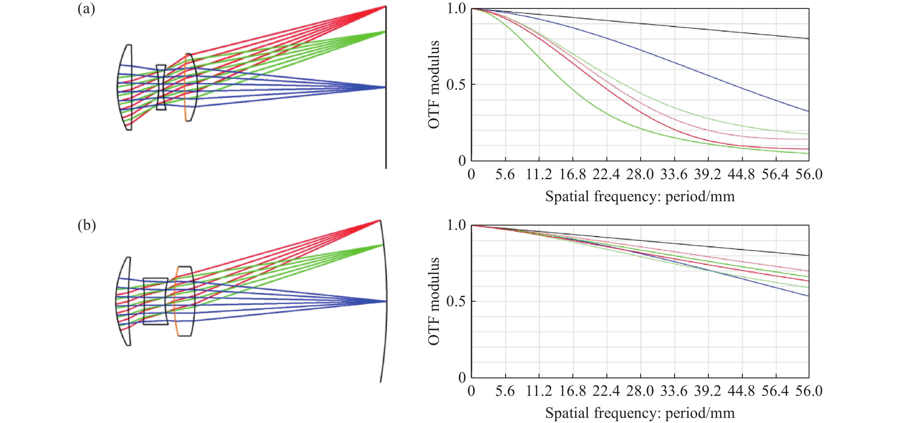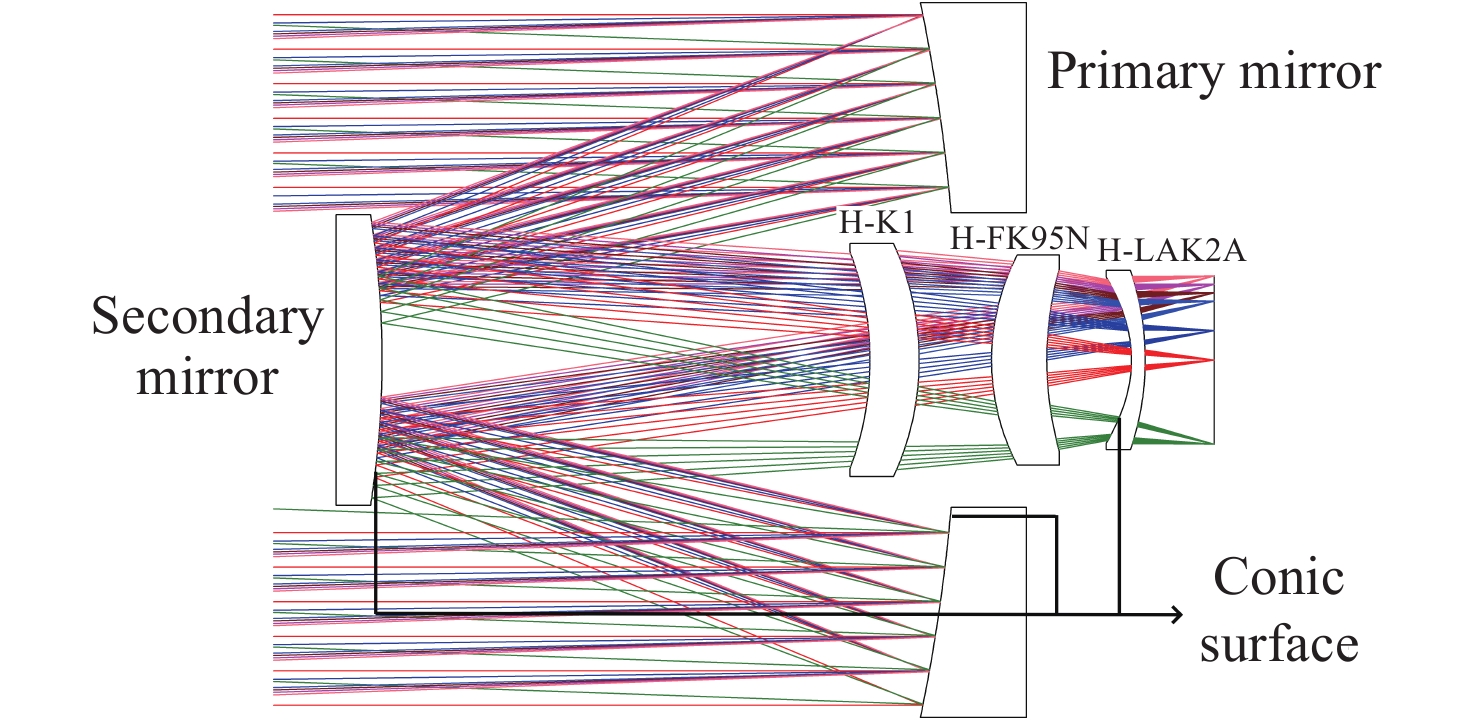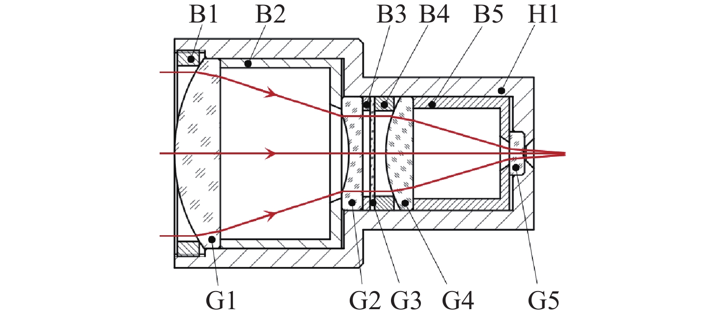 In order to minimize misalignment angle errors in laser-guided seekers, it is necessary to optimize the quality of energy signals through advanced optical design techniques. The initial design parameters were obtained through the integration of aberration theory and state-of-the-art optical design software. The optical system is progressively designed through iterative processes from the perspectives of the optical structural forms and optimization of aberration balancing. To enhance angular measurement precision, we improved the symmetry of the light spot by carefully controlling the image-side telecentric condition. Furthermore, a comprehensive performance analysis of optical plastic materials demonstrated the viability of using these materials in the manufacture of the seeker’s optical structure. Our final optical system design boasts a focal length of 71.6 mm and an F/# of 1, with the edge field chief ray telecentric maintained below 6 mrad. In the operating temperature range, the stability of spot size is better than 0.4% and the maximum distortion of the full field of view is less than 0.5%. Notably, within a ±2° field of view, both the light spot linearity and energy response consistency meet the stringent requirements for precision guidance. The structural design methodology we employed, which focuses on minimizing primary aberrations, can be effectively applied to the optimization of catadioptric systems, thus serving as a valuable reference for the optical structure design of similar seekers.