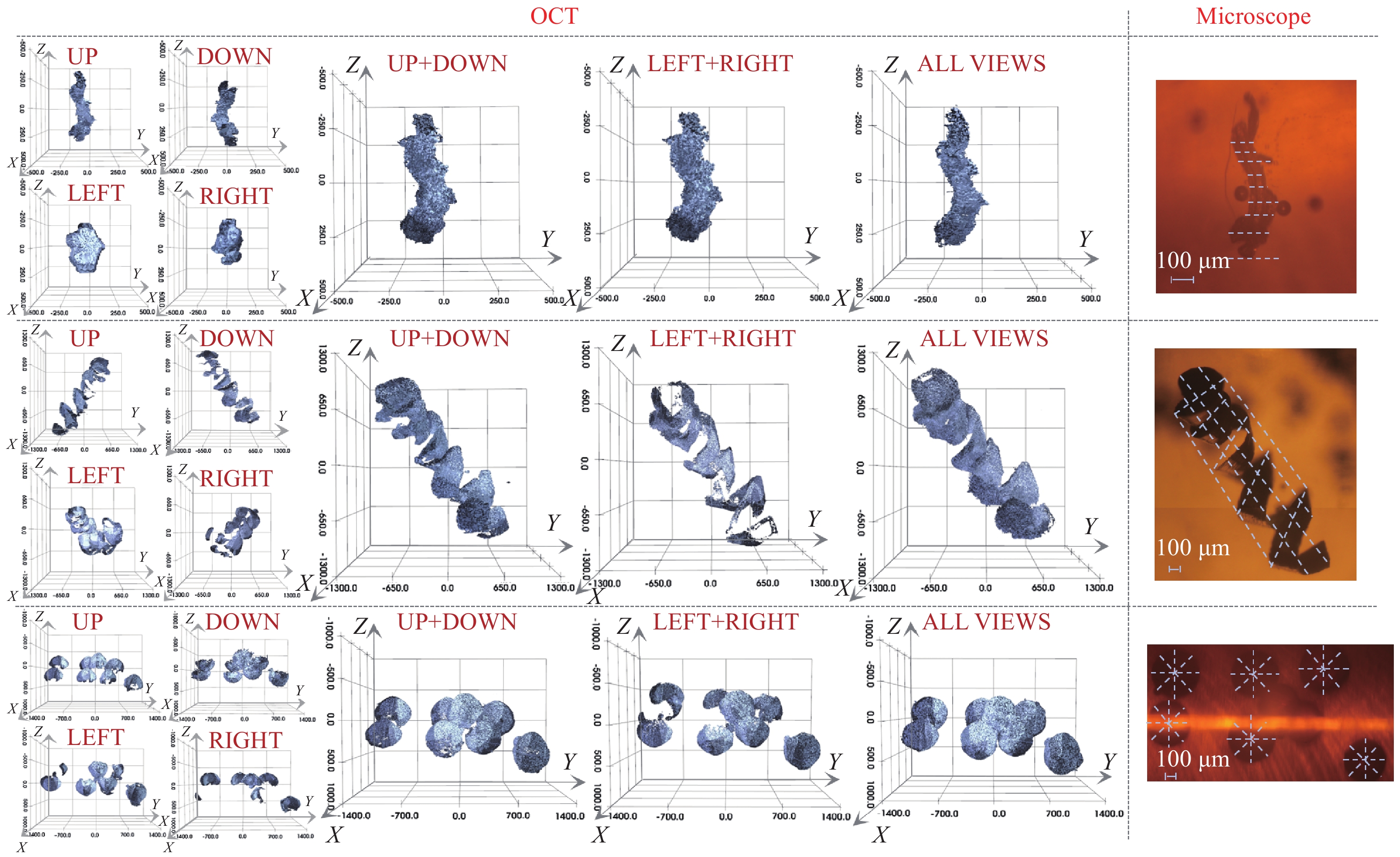 The morphological description of wear particles in lubricating oil is crucial for wear state monitoring and fault diagnosis in aero-engines. Accurately and comprehensively acquiring three-dimensional (3D) morphological data of these particles has became a key focus in wear debris analysis. Herein, we develop a novel multi-view polarization-sensitive optical coherence tomography (PS-OCT) method to achieve accurate 3D morphology detection and reconstruction of aero-engine lubricant wear particles, effectively resolving occlusion-induced information loss while enabling material-specific characterization. The particle morphology is captured by multi-view imaging, followed by filtering, sharpening, and contour recognition. The method integrates advanced registration algorithms with Poisson reconstruction to generate high-precision 3D models. This approach not only provides accurate 3D morphological reconstruction but also mitigates information loss caused by particle occlusion, ensuring model completeness. Furthermore, by collecting polarization characteristics of typical metals and their oxides in aero-engine lubricants, this work comprehensively characterizes and comparatively analyzes particle polarization properties using Stokes vectors, polarization uniformity, and cumulative phase retardation, and obtains a three-dimensional model containing polarization information. Ultimately, the proposed method enables multidimensional information acquisition for the reliable identification of abrasive particle types.