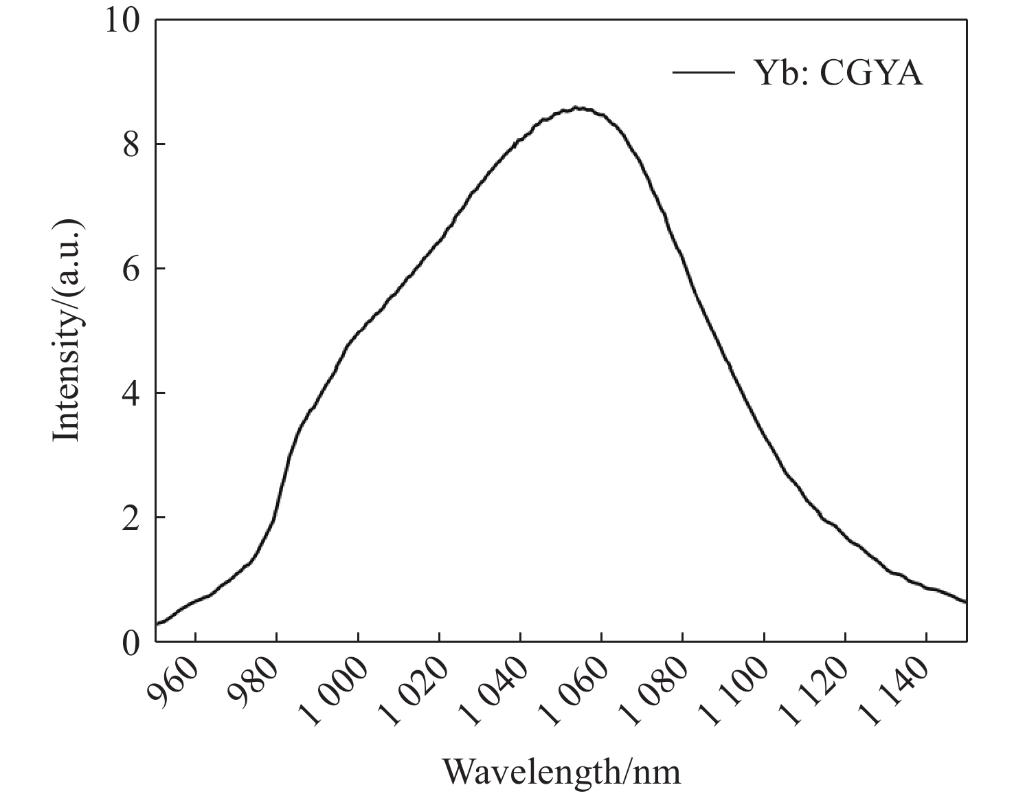 A Yb:CaGd0.33Y0.625AlO4 (Yb:CGYA) laser crystal of high optical quality has been successfully synthesized via the Czochralski method. The introduction of Gd3+ ions preserves the original structure and efficiently generates inhomogeneous broadening of the Yb3+ ion emission spectra. The fluorescence emission peak wavelength of the Yb:CGYA crystal is