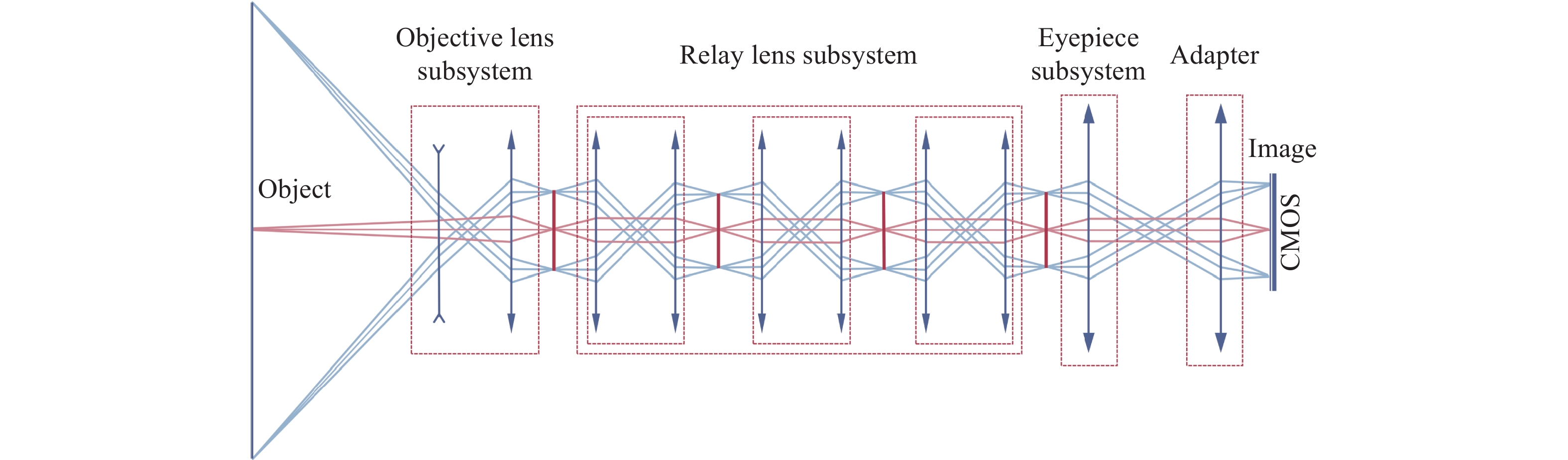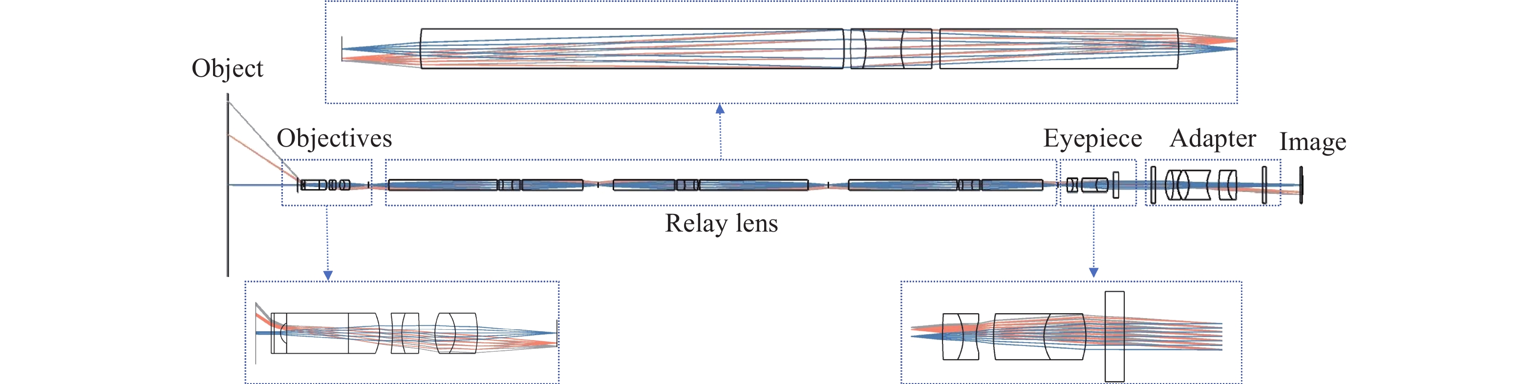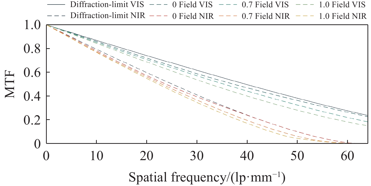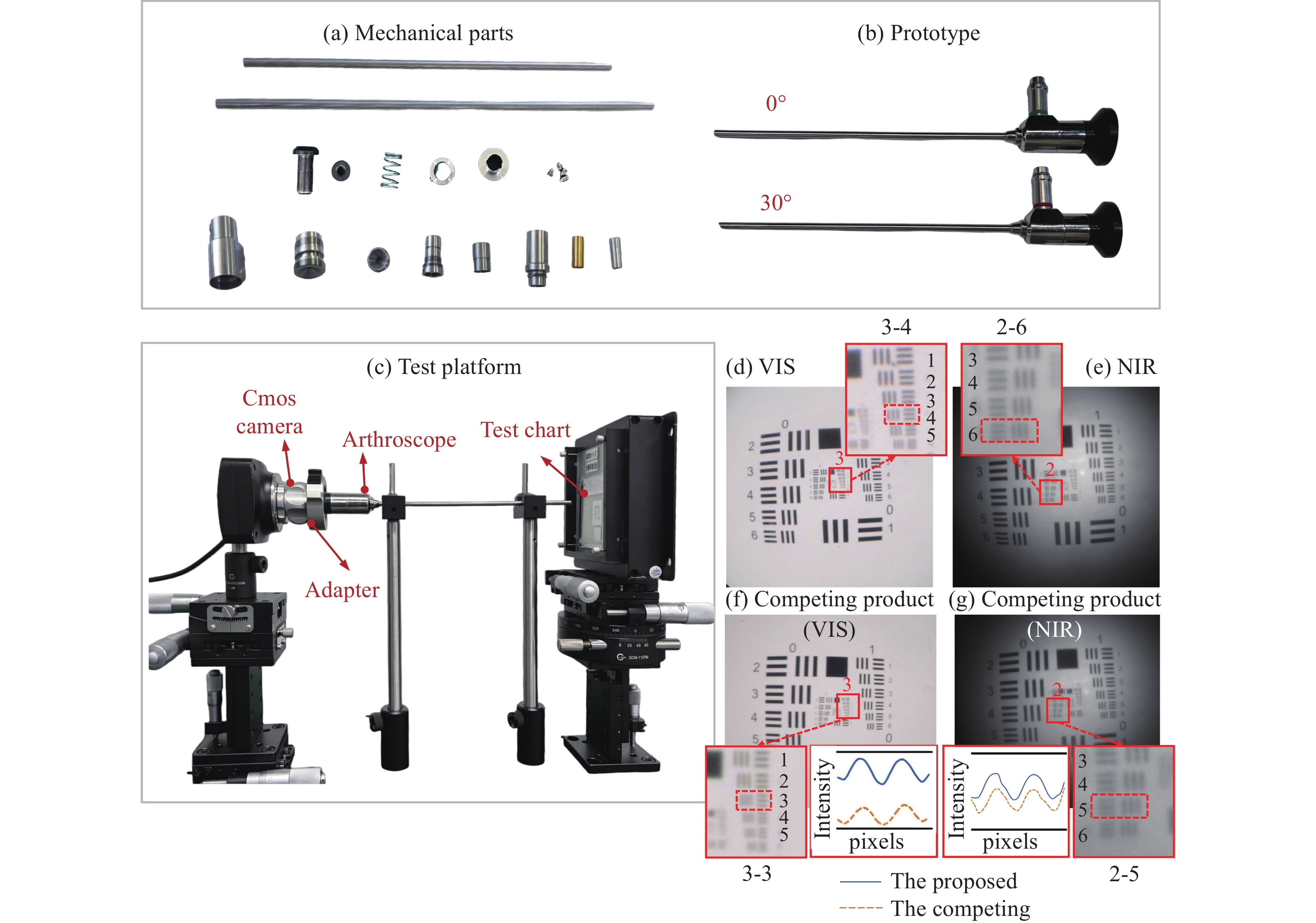 To enhance the imaging performance of arthroscopes in clinical surgery and broaden their potential for clinical applications, a wide-spectrum arthroscopic optical system featuring a large field of view, high resolution, and parfocal imaging capability in both visible and near-infrared bands was designed. The objective lens use a high optical power negative lens to compress the chief-ray angle and reduce the optical path difference between off-axis and on-axis rays. Through conjugate aperture imaging, an equivalent virtual stop is formed inside the turning prism, which allows the system to maintain both high transmission efficiency and high image quality under a limited aperture. The relay lens adopts a near-symmetric structure, and by distributing optical power and Abbe numbers appropriately, it effectively suppresses the accumulation of axial chromatic aberration across the broad spectral range, thereby achieving parfocal imaging. Tolerance analysis shows that the system has good manufacturability and assembly feasibility. Experimental results verify that the designed wide-spectrum arthroscope achieves parfocal imaging in the visible and near-infrared bands with a 95° field of view, and angular resolutions of 4.34 C/(°) and 2.74 C/(°), respectively. The optical system provides a feasible solution for achieving low-cost, high-performance fluorescence arthroscopy and has significant application value.