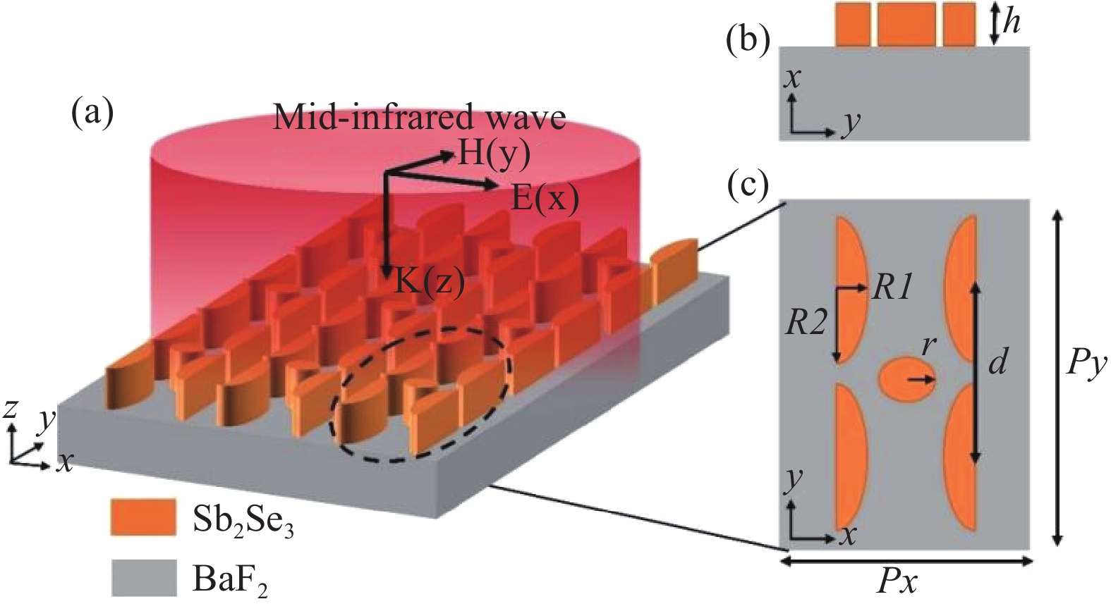 This study proposes a high-performance mid-infrared refractive index sensor based on an all-dielectric metasurface, operating at a wavelength of approximately 5.36 μm. The metasurface unit consists of four symmetrically arranged Sb2Se3 semi-elliptical structures and a central Sb2Se3 cylinder, periodically arranged on a BaF2 substrate. Numerical simulations were performed using the finite-difference time-domain (FDTD) method to obtain the reflection spectrum and to analyze the electromagnetic field vector distribution at the resonance peak, as well as the influence of geometric parameters on the spectral response. The observed Fano resonance in the reflection spectrum is explained by the theory of quasi-bound states in the continuum (Q-BIC). Through systematic parameter scanning, we investigate the influence of structural parameters on the quality factor (Q) and full width at half-maximum (FWHM) under the constraint of fixed resonance intensity, and compare the spectral linewidth responses when adjusting parameters in different directions. Furthermore, by varying the background refractive index, the refractive-index sensing characteristics based on the Fano resonance are studied. The results show that the sensor achieves a maximum sensitivity of 1985 nm/RIU, a peak Q-factor of