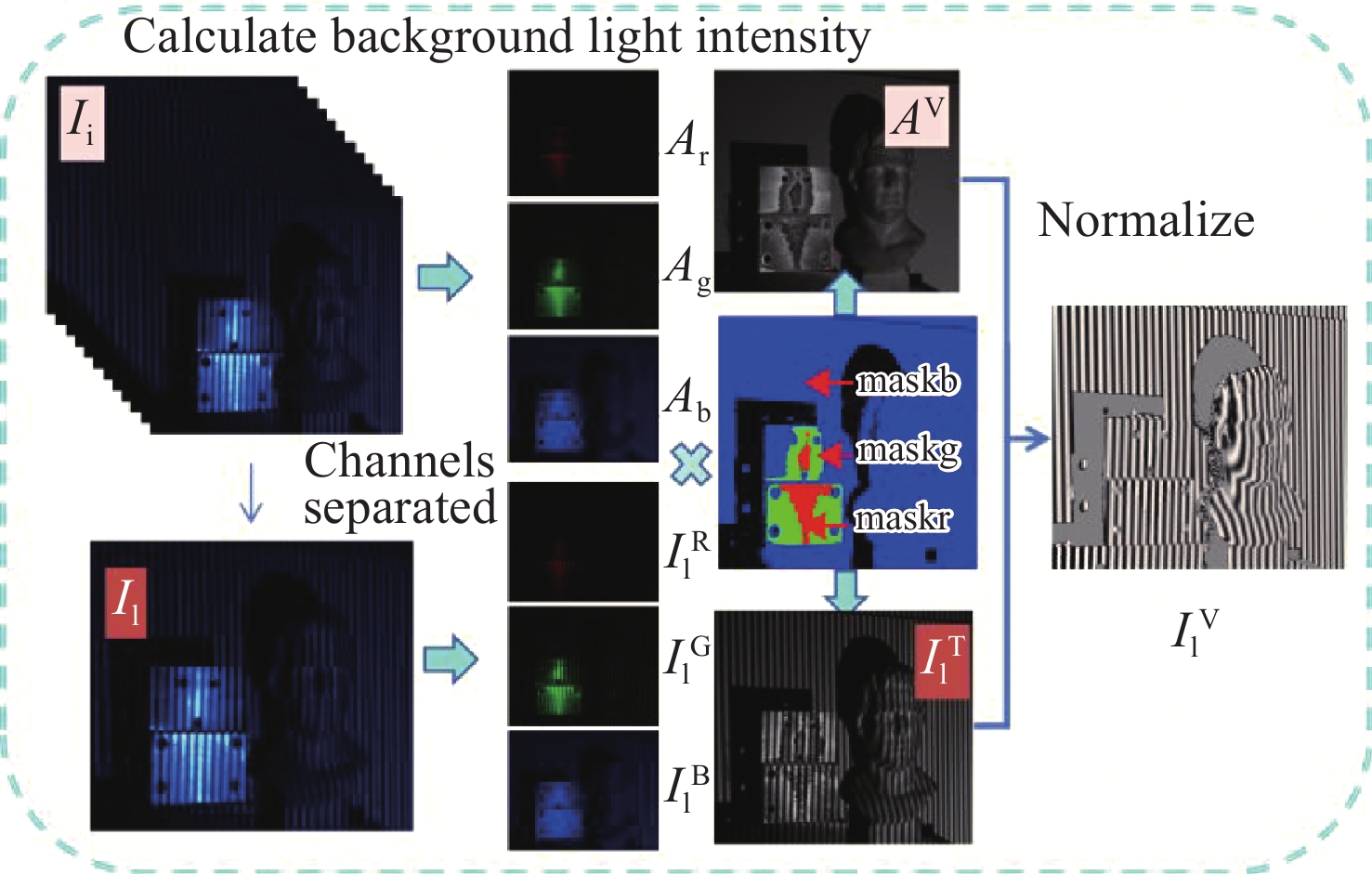 单一曝光时间或单一投影强度的条纹投影轮廓术(FPP)系统方法受限于相机的动态范围,会导致图像的过饱和和欠饱和,从而造成点云缺失或精度降低。为了解决这一问题,有别于投影仪像素调制方法,我们利用彩色投影仪三通道LED投影强度可单独控制的特点,提出了投影仪三通道光强分离的方法,结合彩色相机,实现了单曝光、多光强图像采集。进一步地,将串扰系数应用到被测物体三通道反射率预测中,结合聚类与通道映射,建立了投影仪三通道电流与相机三通道图像光强的像素级映射模型,实现了最佳投影电流预测和高动态范围图像获取。我们所提出的方法只需一次曝光就能实现高动态范围场景的高精度三维数据获取,该方法的有效性已通过标准平面和标准台阶的实验进行了验证,相比于现有单曝光高动态范围方法显著降低了平均绝对误差(44.6%), 相比于多曝光融合方法所需要的采集图像数量显著减小(文中场景下图片数量减小70.8%),提出的方法在各种 FPP 相关领域具有巨大潜力。