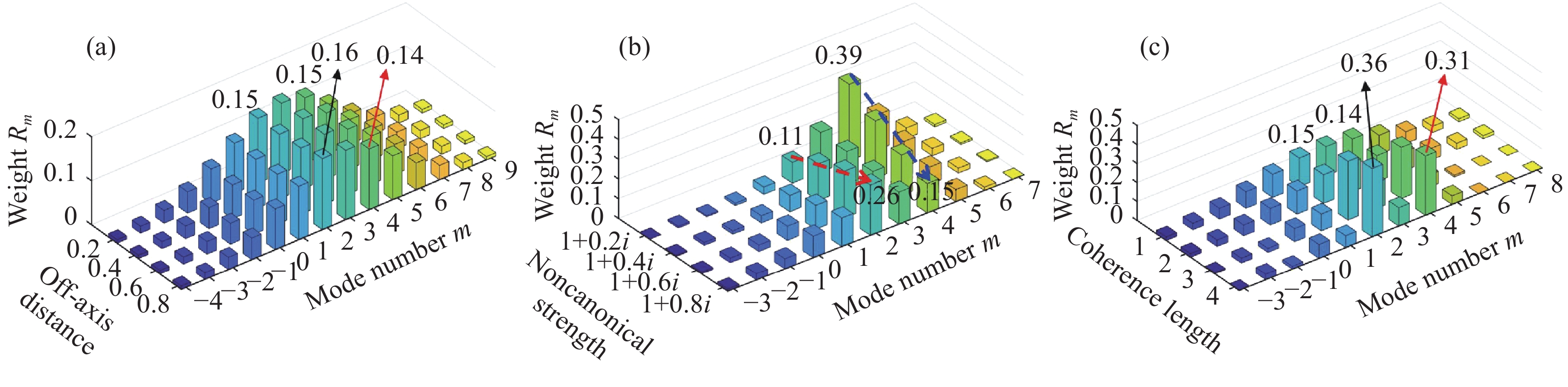 将非正则涡旋对引入部分相干光领域,利用Fraunhofer衍射积分公式研究了该光束在远场的空间相关奇点(SCS)和轨道角动量(OAM),详细探讨了非正则因子、离轴距离和涡旋符号对空间相关奇点的影响,研究了远场OAM谱、密度、检测与串扰几率。结果表明:不论是正则还是非正则涡旋对,SCS的位错数量总是等于拓扑荷的绝对值之和。尽管OAM模式与其功率权重的乘积之和等于拓扑荷的代数和,但是该关系对于非正则情况却不再成立。相比于探测模,离轴距离、非正则因子或相干长度的变化会导致毗邻模具有更大功率。这也意味着串扰几率会大于中心探测几率。本文结果对基于OAM的光通信、光成像、光传感、光计算具有潜在的应用价值。