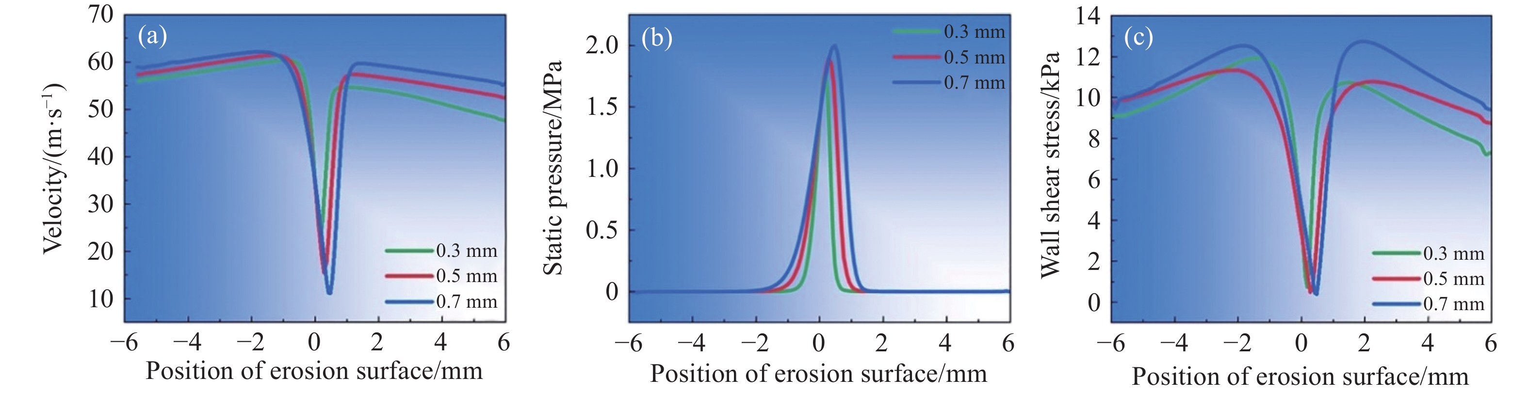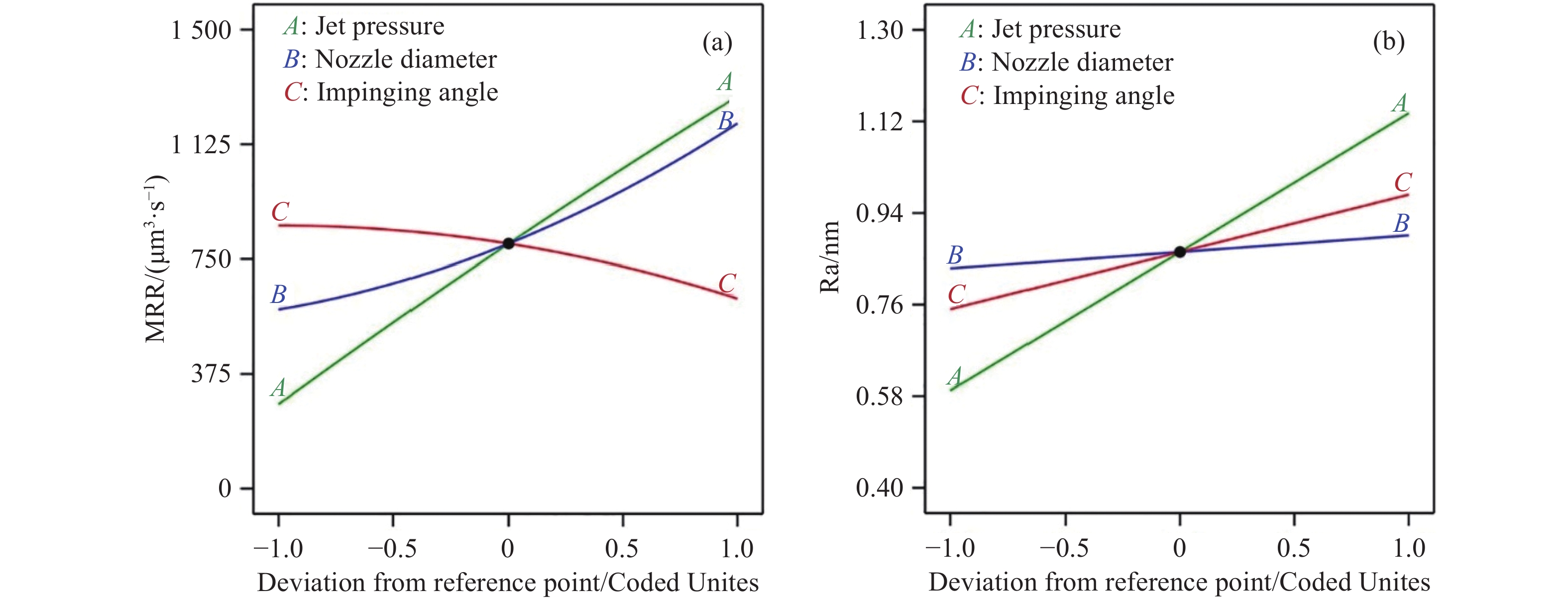 磨料水射流抛光技术作为一种非接触式超精密加工方法,因其材料去除函数稳定、无亚表面损伤及强形状适应性,在光学元件加工领域具有重要应用价值。本研究通过计算流体动力学(CFD)数值模拟方法,系统分析了射流压力、喷嘴直径及入射角度对抛光流场压力分布、速度分布及壁面剪切力分布的作用规律。基于Box-Behnken实验设计,构建了响应面回归模型,系统研究了工艺参数对熔石英玻璃的材料去除率(MRR)和表面粗糙度(Ra)的影响机制。实验结果表明:通过增大射流压力和喷嘴直径可显著提高MRR,该规律与流场仿真揭示的剪切应力分布特征一致;但增大射流压力和入射角度会导致Ra增大,不利于表面质量提升。通过遗传算法(GA)多目标优化建立Pareto解集,成功实现了加工效率与表面质量的协同优化,在射流压力为2 MPa、喷嘴直径为0.3mm、入射角度为30°的参数组合下MRR达169.05 μm3/s、Ra低至0.50 nm。实验结果表明,模型预测值与实测值误差仅为4.4%(MRR)和3.8%(Ra),验证了模型的可靠性。本研究建立的参数优化体系为复杂曲面光学元件的超精密抛光提供了理论依据与技术支持。