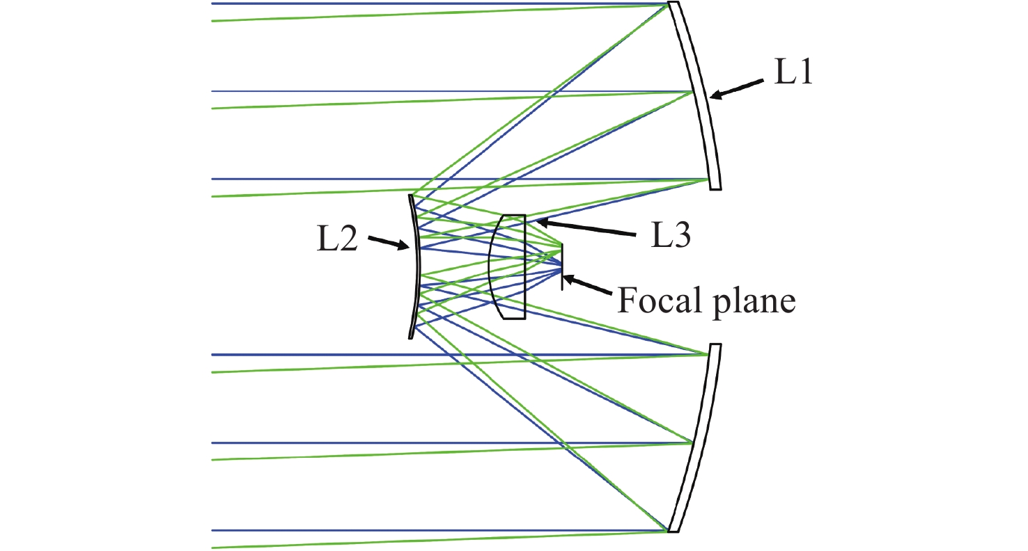 随着中长红外高光谱成像技术的突破性进展,军用高光谱成像系统凭借其独特的特征识别能力和隐蔽侦察优势,在现代战场态势感知领域展现出了显著的战略价值。本研究面向航空探测应用需求,基于320×240像素双色制冷型红外探测器,设计了一种工作于中波红外(3.7~4.8 μm)和长波红外(7.7~9.5 μm)的双波段Offner型光谱成像系统。该系统采用折射与折反射混合光学结构,实现了32 mm、200 mm、800 mm三视场切换式变焦功能。光学系统采用Offner分光结构,有效抑制了系统初级像差;其次,通过引入二次成像中继系统,实现了100%冷光阑匹配,有效降低了冷反射效应。实验测试结果表明,该系统在各波段及不同焦距状态下均表现出优异的成像性能,在特征频率17 lp/mm处,调制传递函数接近衍射极限,且温度变化对成像质量变化影响不大,光学像质满足指标设计。该光学系统兼具宽光谱响应、大变倍比(25×)和快速视场切换等特点。光谱分辨率达到25 nm,其成像质量与光谱分辨能力满足航空光电侦察的技术需求,在军事侦察、安防监控及环境监测等领域具有重要的应用价值。