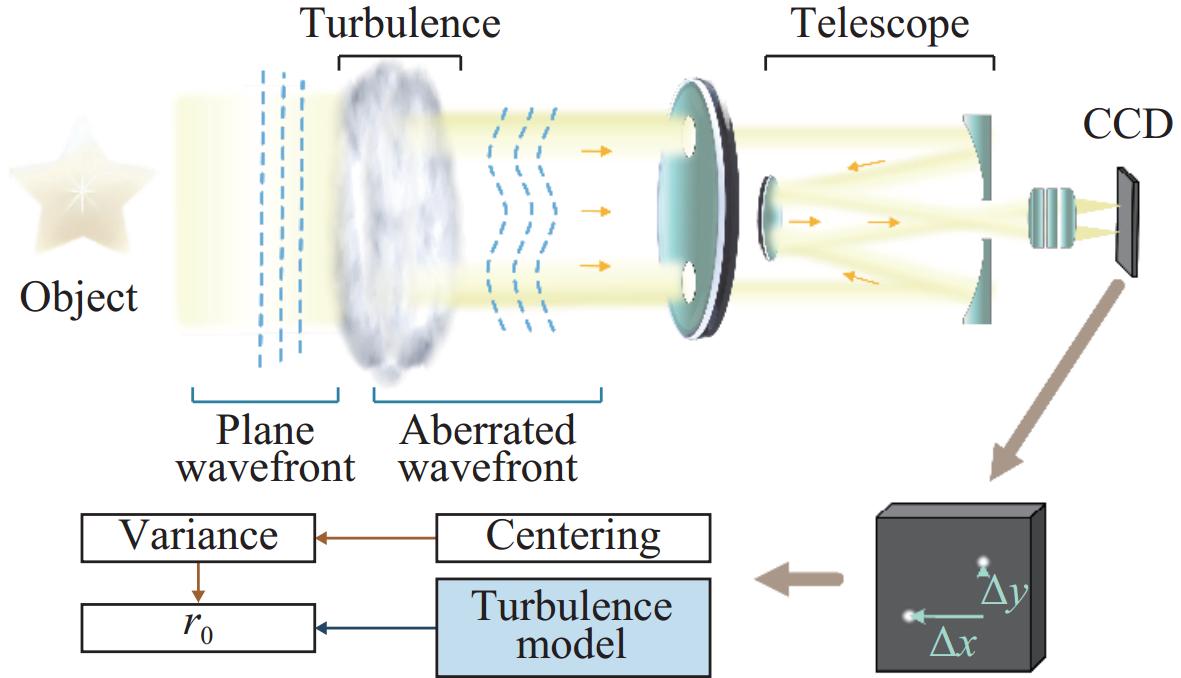 Abstract:To measure the atmospheric coherence length, an important parameter that characterizes the impact of atmospheric turbulence on the performance of free-space optical communication links, we propose a novel strategy for measuring atmospheric coherence length by taking extended targets as the information source, which integrates the wavefront structure function approach with the extended target offset algorithm to directly estimate the atmospheric coherence length. The paper first reviews the principles and current research status of mainstream algorithms, emphasizing the reliance of existing algorithms on guide star targets and their limitations in horizontal links. Subsequently, we propose a new measurement scheme that combines the improved normalized cross-correlation algorithm with the wavefront structure function method to estimate atmospheric coherence length under extended targets scenarios. In comparison to traditional measurement methods, our approach can realize coherence length measurement based on extended targets in horizontal links, thereby significantly reducing system complexity and equipment costs. To validate the effectiveness and measurement accuracy of the proposed method, both simulations and experiments were designed and conducted. The results demonstrate that the coherence length values measured by this method are highly consistent with those obtained using the DIMM method and the wavefront phase variance method, with a measurement accuracy error of approximately 4%. This indicates that the proposed method can effectively assess atmospheric coherence length, thereby providing a valuable reference for enhancing the reliability of free-space laser communication systems.