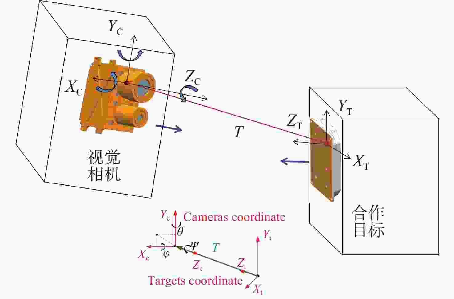 Parameters Std Mean-value Max-vaule Min-vaule Tx/mm 0.3180 − 283.5990 − 283.2110 − 285.5420 Ty/mm 0.2050 245.5650 246.7930 244.7530 Tz/mm 4.3640 − 20730.6000 − 20715.2000 − 20742.5000 $\varphi $/(°) 0.0107 − 0.0645 − 0.0052 − 0.0827 $\theta $/(°) 0.0108 0.0595 0.0807 − 0.0091 $\psi $/(°) 0.0011 − 0.0079 − 0.0054 − 0.0111 表 3 双星距离5.6 m时的相对位置与姿态测量结果