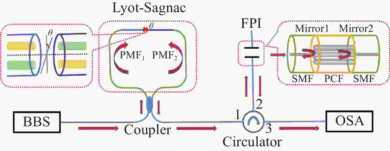 • 图 1  基于Lyot-Sagnac传感结构与FPI级联的光纤传感器结构示意图