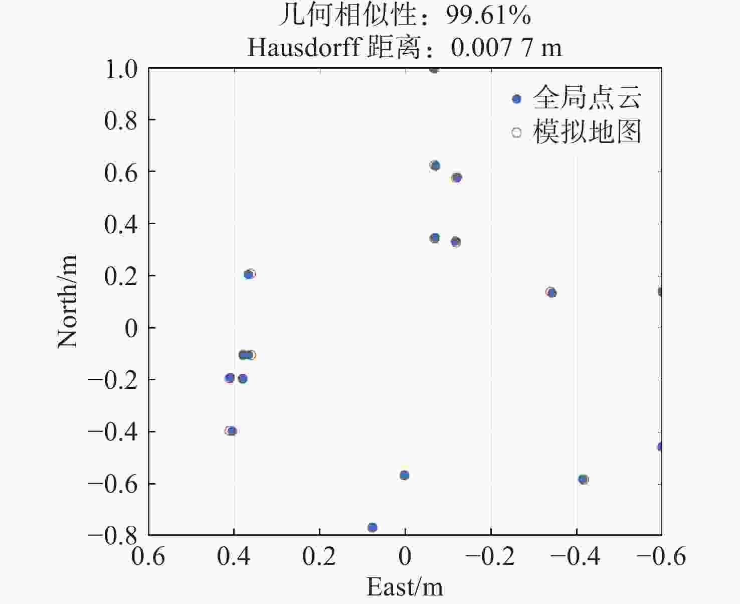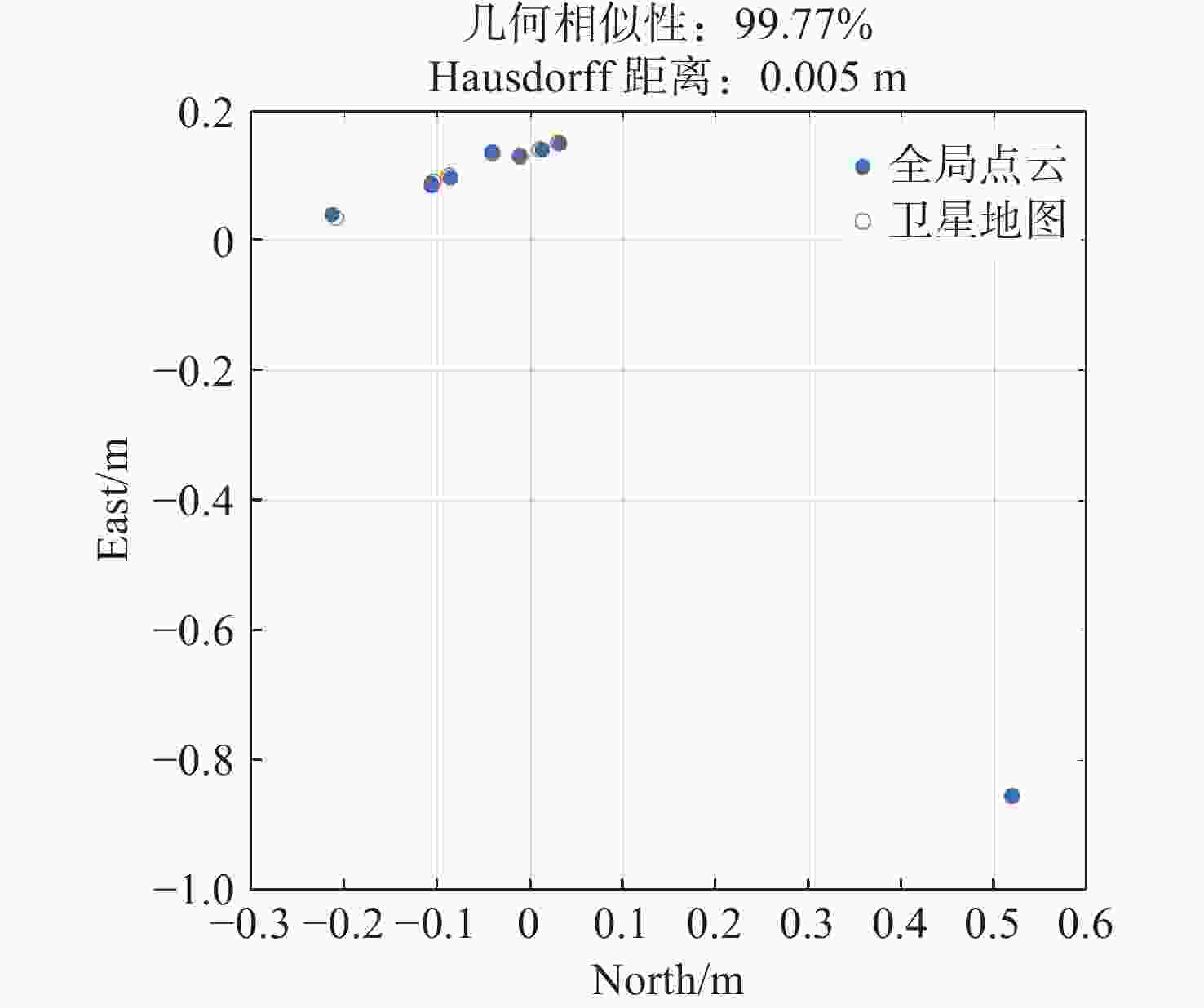 改进ICP平均值 9.03 m 3.67 m 0.26 m 0.21 m 最大值 9.36 m 5.97 m 4.52 m 0.80 m 最小值 8.20 m 2.69 m 0.04 m 0.04 m 标准差 0.34 m 0.58 m 0.77 m 0.16 m 耗时 0.094 s 0.172 s 0.110 s 0.186 s 表 2 仿真场景全局精配准绝对空间一致性分析
