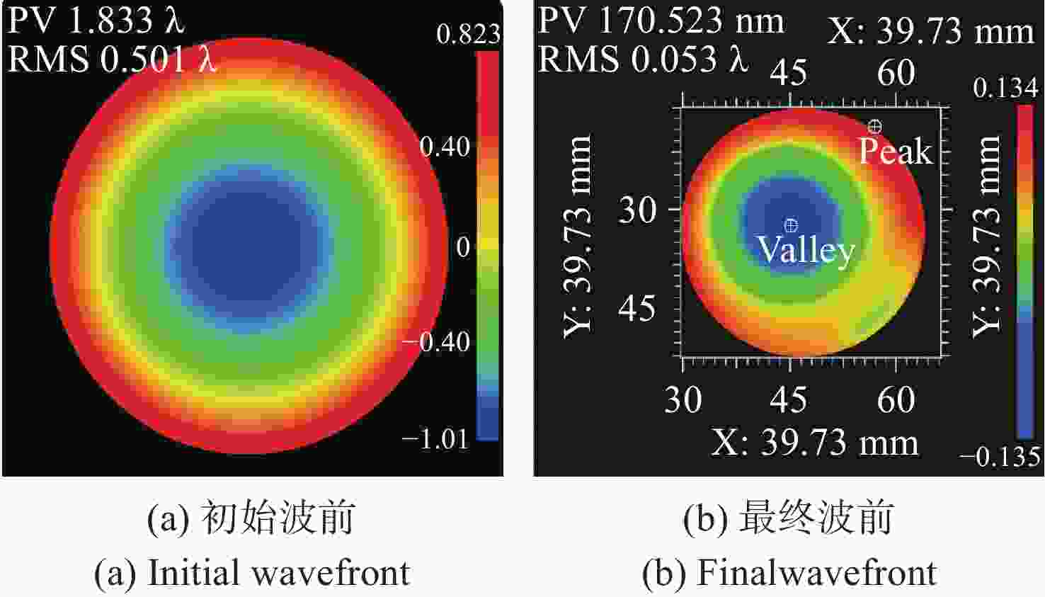 Item Index Radius of curvature 3 fringes Lens center thickness 0.02mm Surface irregularity 0.3 fringes Surface decenter 0.03mm Surface tilt 0.03° Element decenter 0.03mm Element tilt 0.03° Index 0.001 Abbe number 0.5% Test wavelength 1550 nm 表 4 公差分析结果