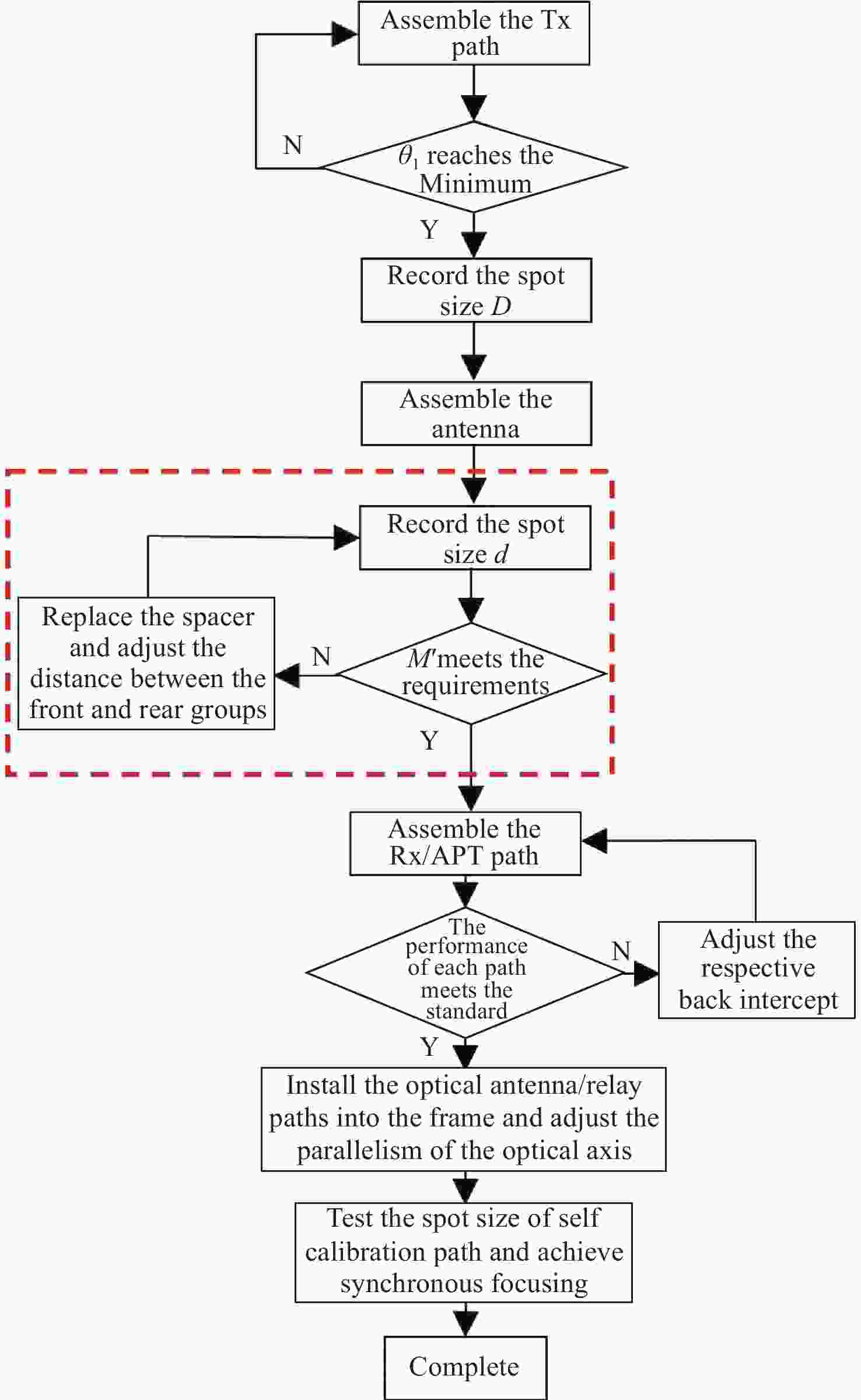 随着空间激光通信技术的快速发展,高速星间链路组网需求日益强烈。然而,国内现阶段对星间激光通信载荷的研究仍以试验验证性质为主,光学系统设计复杂,加工、装调、检测时间长且成本高,不利于激光终端的低成本快速批产。为解决这一问题,本文提出了一种单波段消色差的透射式光学天线,以及基于平行光管检测光学天线放大倍率的快速装调方法。通过减小色差校正范围,使得光学天线的长度缩减了15.83%,透镜数量从6片减少到4片,单套光学天线的加工成本降低33.33%。仿真模拟给出放大倍率的装调范围为4.37~5.08。实际装调后,放大倍率实测值为4.82,信号发射光路的发散角为67.53 μrad,信号接收光路的耦合效率为51.42%,自标校光斑尺寸在12×12像元以内。同时还进行了对照试验,所提方法的装调时间不足干涉仪法的10%。装调测试结果表明,本方法既可在设计上实现光学天线的轻小型化设计,也可大幅度降低装调检测时间,并实现信号收发、捕跟探测与自标校光路的同步合焦。