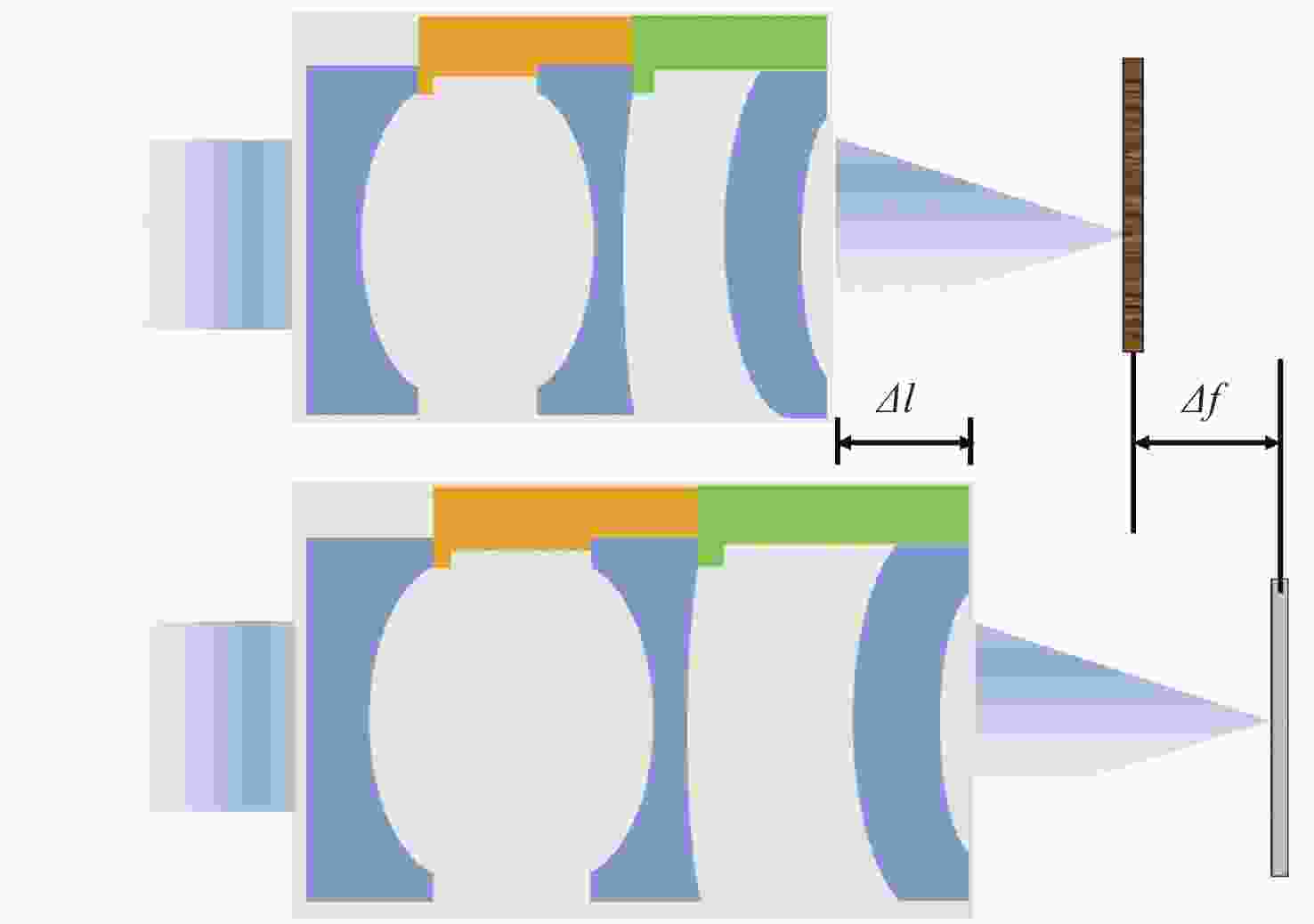 Lens1 H-LAK1 H-LAK11 H-ZBAF3 H-ZBAF50 H-LAK70 γ 1.49×10−5 1.99×10−5 1.84×10−5 1.96×10−5 2.37×10−5 Lens2 H-LAK1 H-LAK11 H-LAK10 H-ZBAF3 H-LAK67 γ 1.49×10−5 1.99×10−5 1.97×10−5 1.84×10−5 2.37×10−5 Lens3 ZF50 H-ZF6 ZF12 ZF51 H-ZF50 γ 2.38×10−5 2.47×10−5 4.29×10−5 3.92×10−5 2.51×10−5 Lens4 H-ZF1 H-ZF39 H-ZF2 H-F51 H-ZBAF4 γ 1.64×10−5 1.86×10−5 1.92×10−6 2.21×10−5 4.98×10−5 Lens5 H-LaF3B `H-LAF6LA H-ZF12 H-ZBAF20 H-LAF53 γ 1.92×10−5 2.71×10−5 2.49×10−5 3.13×10−5 3.18×10−5 Lens6 H-LaF3B `H-LAF6LA H-ZF12 H-ZBAF20 H-LAF53 γ 1.92×10−5 2.71×10−5 2.49×10−5 3.13×10−5 3.18×10−5 表 4 不同镜筒材料线胀系数