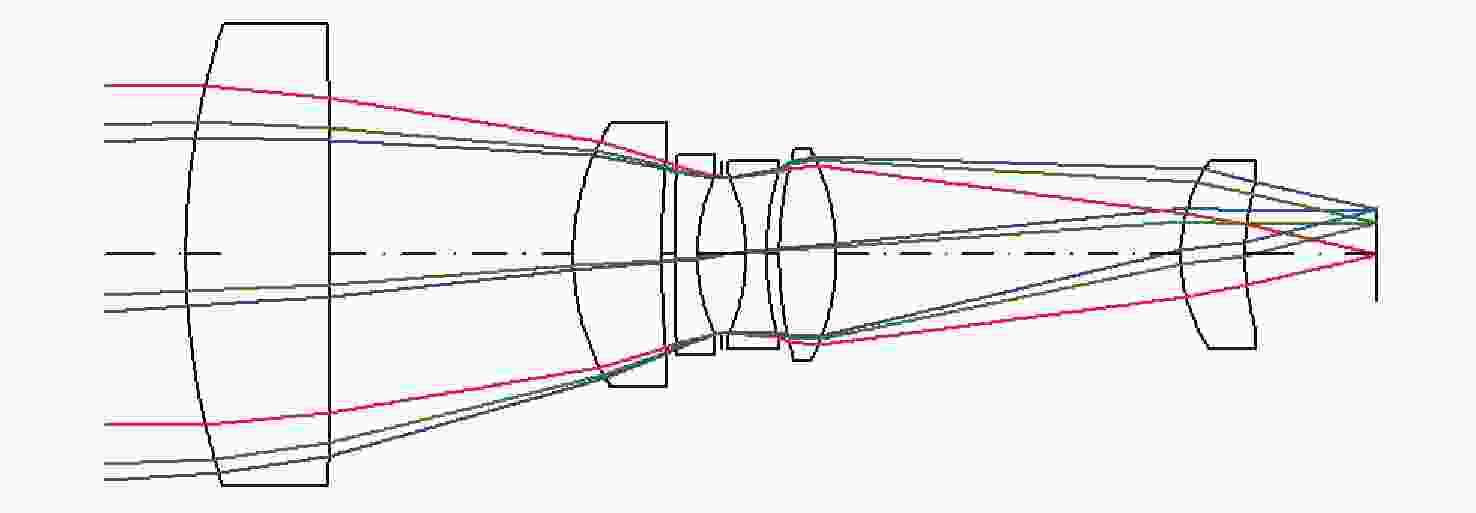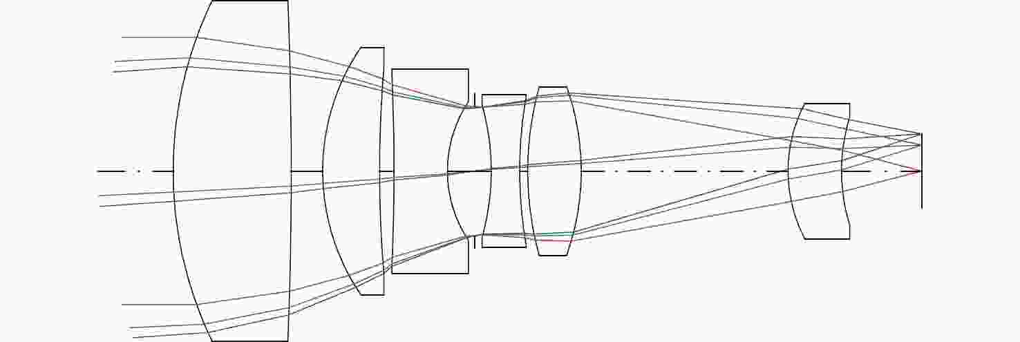 Parameter Performance indicators Spectral range 550~710 nm FOV 7° Focal 100 mm F number 2.22 Aperture 45 mm Temperature range −30~270 °C 表 2 光学系统初始结构折射率与阿贝数