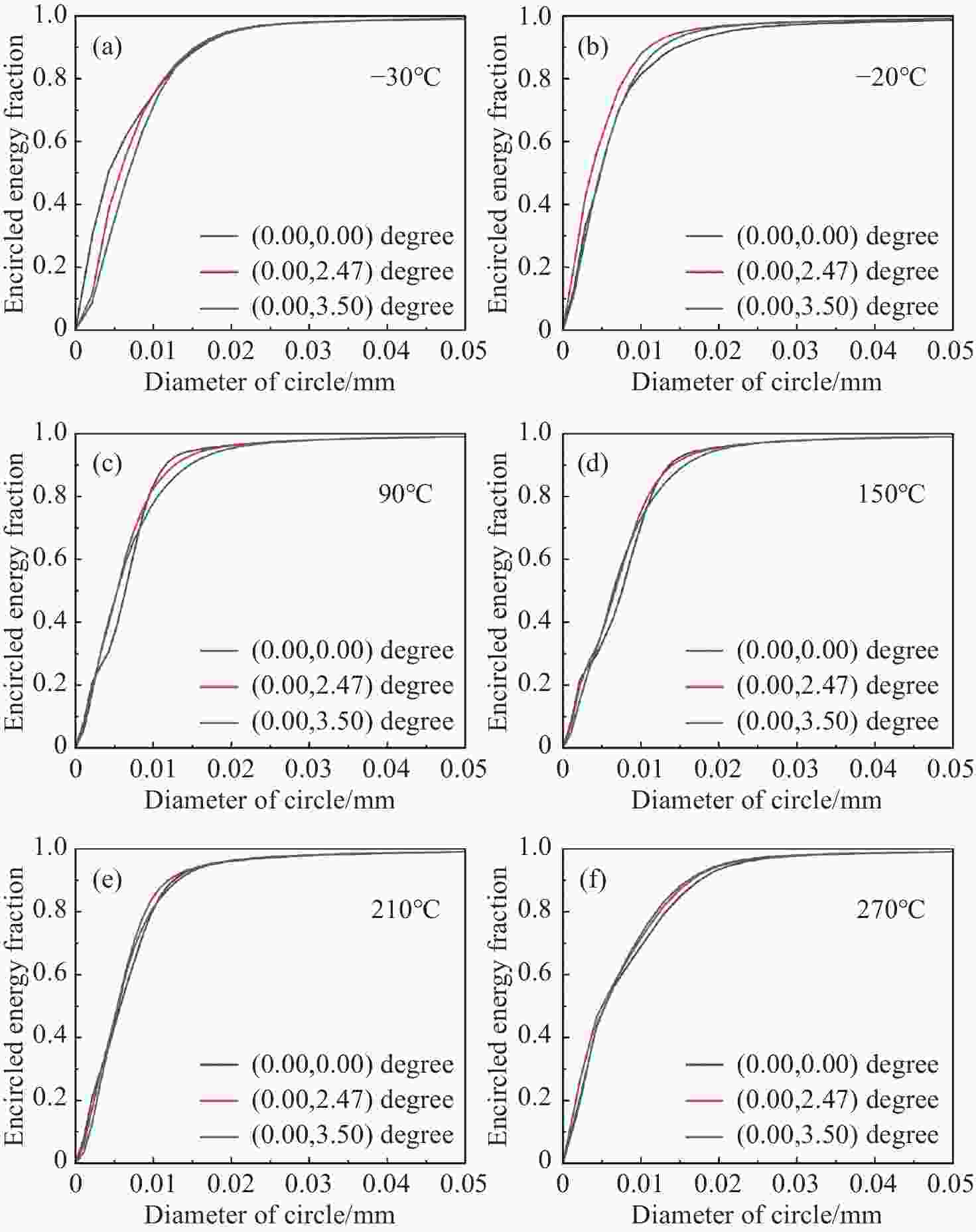 在宽温域应用场景中,传统光学系统往往难以维持稳定的成像质量,其主要原因在于常规无热化设计方法未能充分考虑玻璃材料在高温与低温下线胀系数与折射率温度系数的差异。针对这一问题,本文提出了一种面向宽温域的无热化设计方法,通过重建热像差建模过程,准确表征热像差随温度变化的非线性响应,进而筛选出在宽温域内综合热光焦度最小的玻璃材料组合,并结合镜筒材料热膨胀特性,有效抑制系统焦点漂移。设计验证中,构建了一套焦距为100 mm、F 数为2.2、视场角为 7°的光学系统。结果表明,在−30 °C至270 °C的温度范围内,该系统始终保持优异的成像性能:在全视场和全温度条件下,MTF(@56 lp/mm)均大于 0.5,弥散斑直径小于9 μm,且90%以上的能量聚焦在直径18 μm的包围圆内。上述结果充分验证了所提方法的有效性,为宽温域光学系统的无热化设计提供了有力支撑。同时,该方法具备良好的工程适应性,在复杂环境下的成像系统设计中展现出广阔的应用前景。