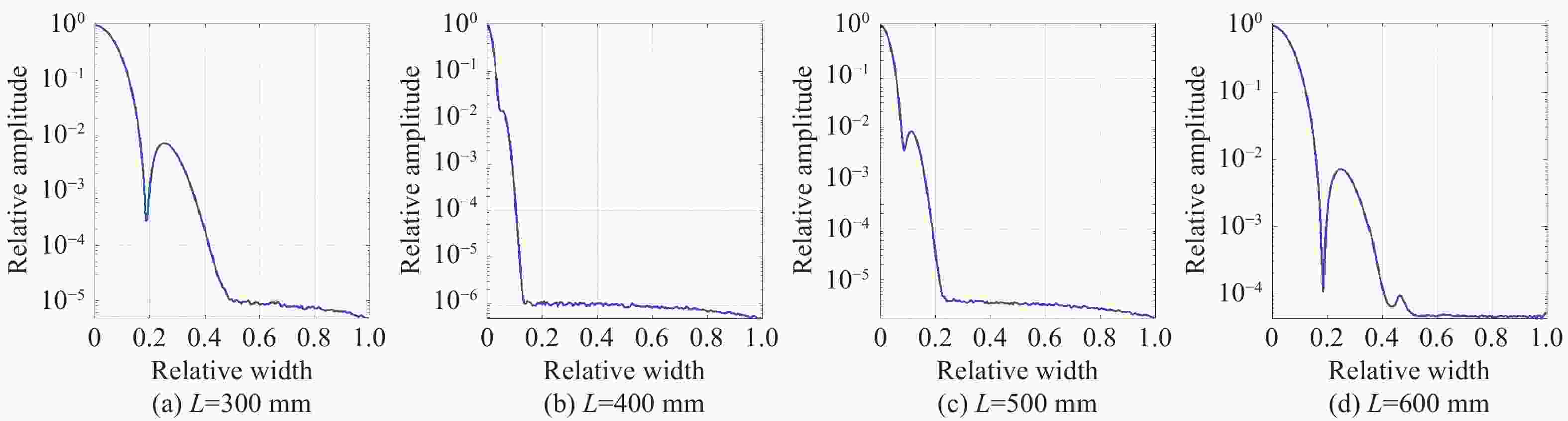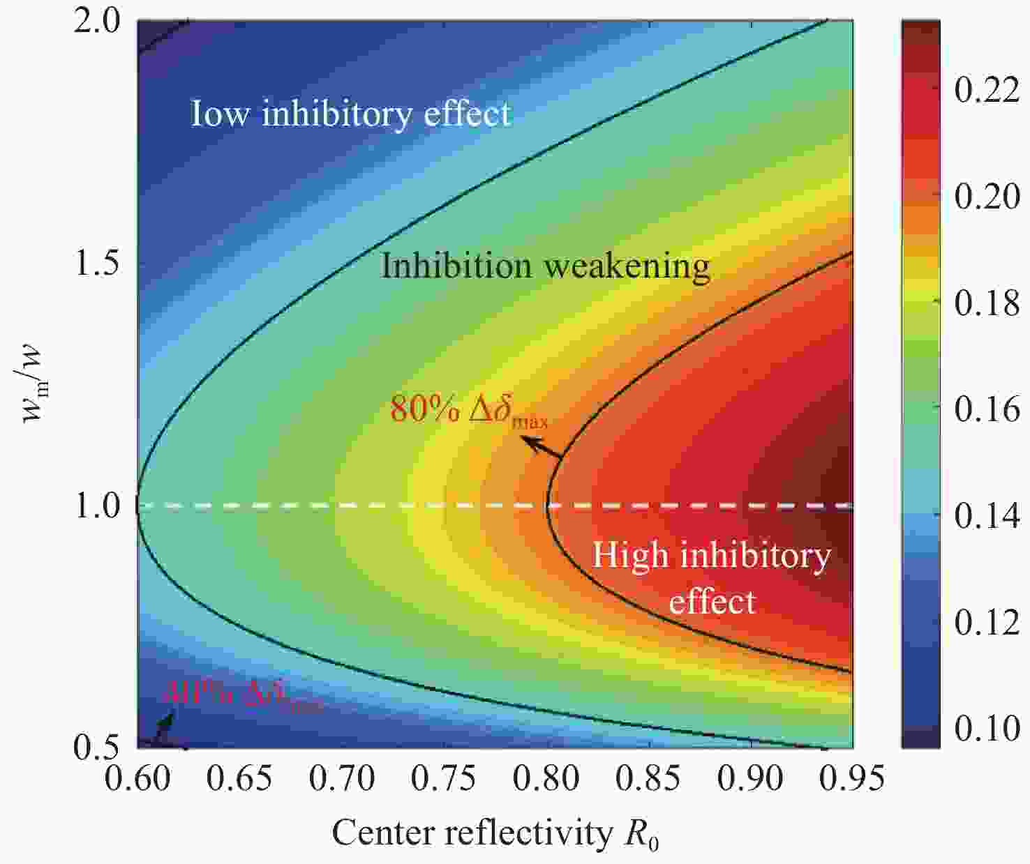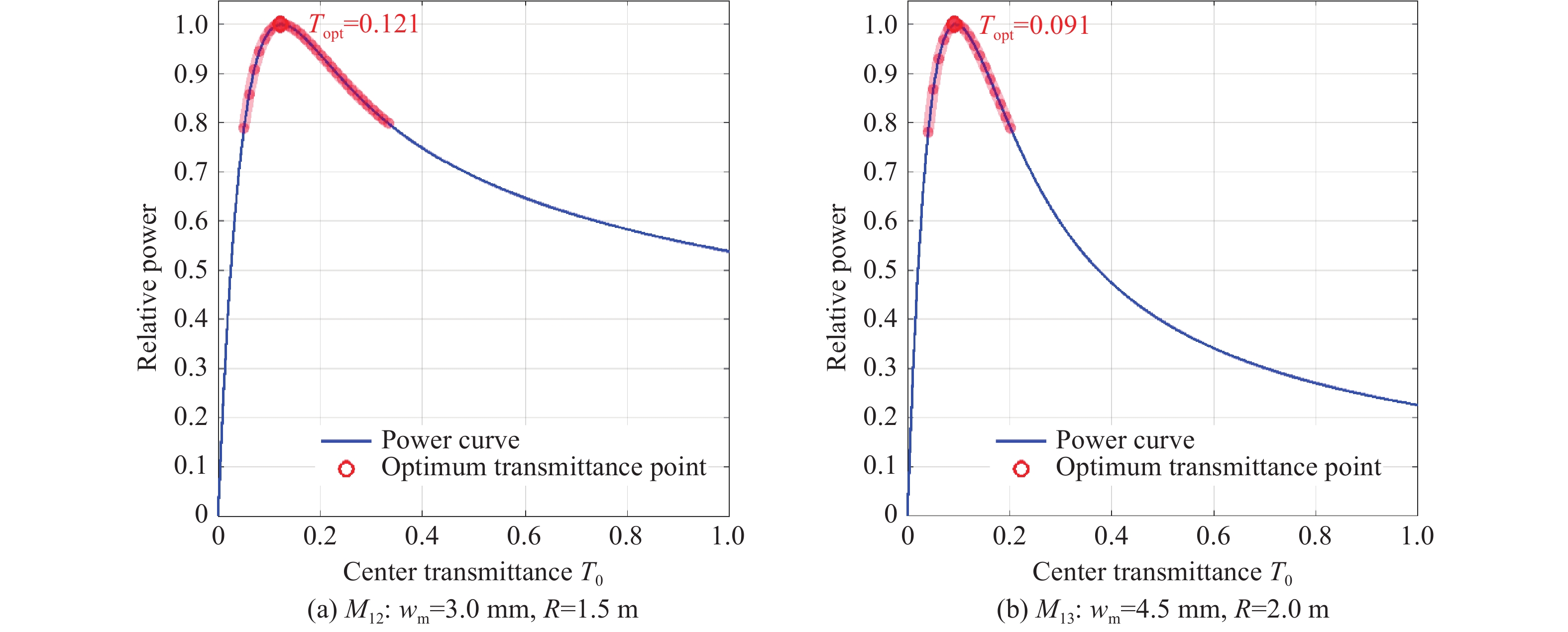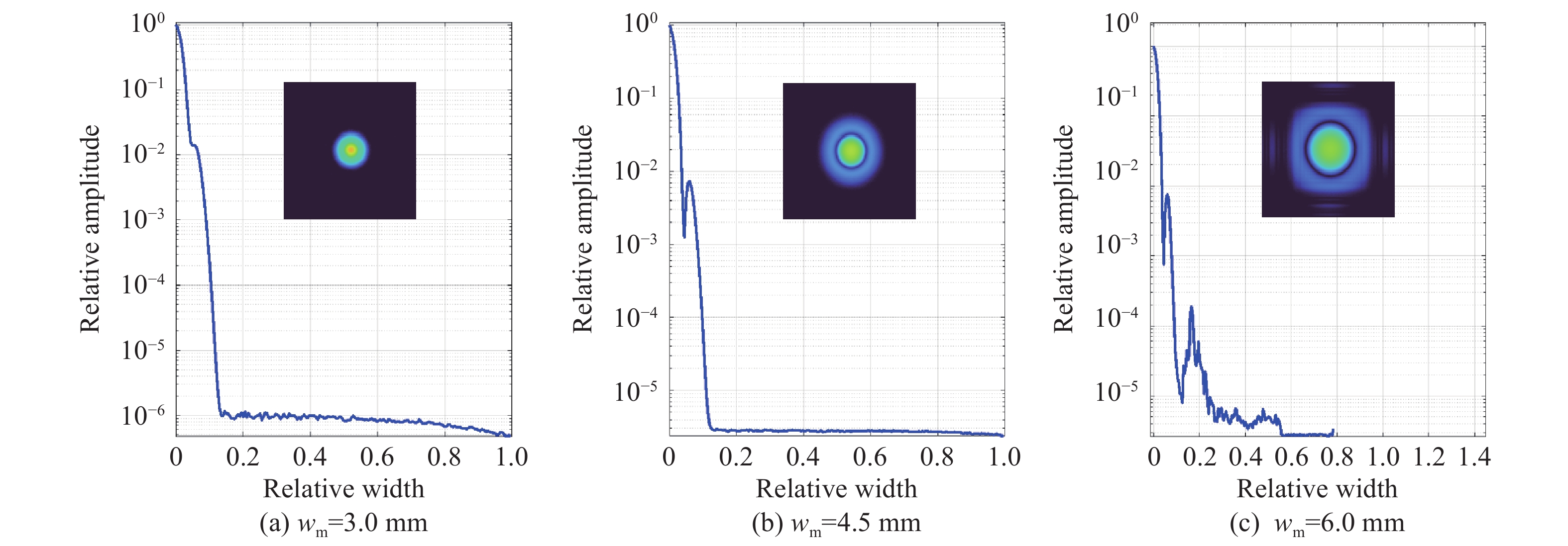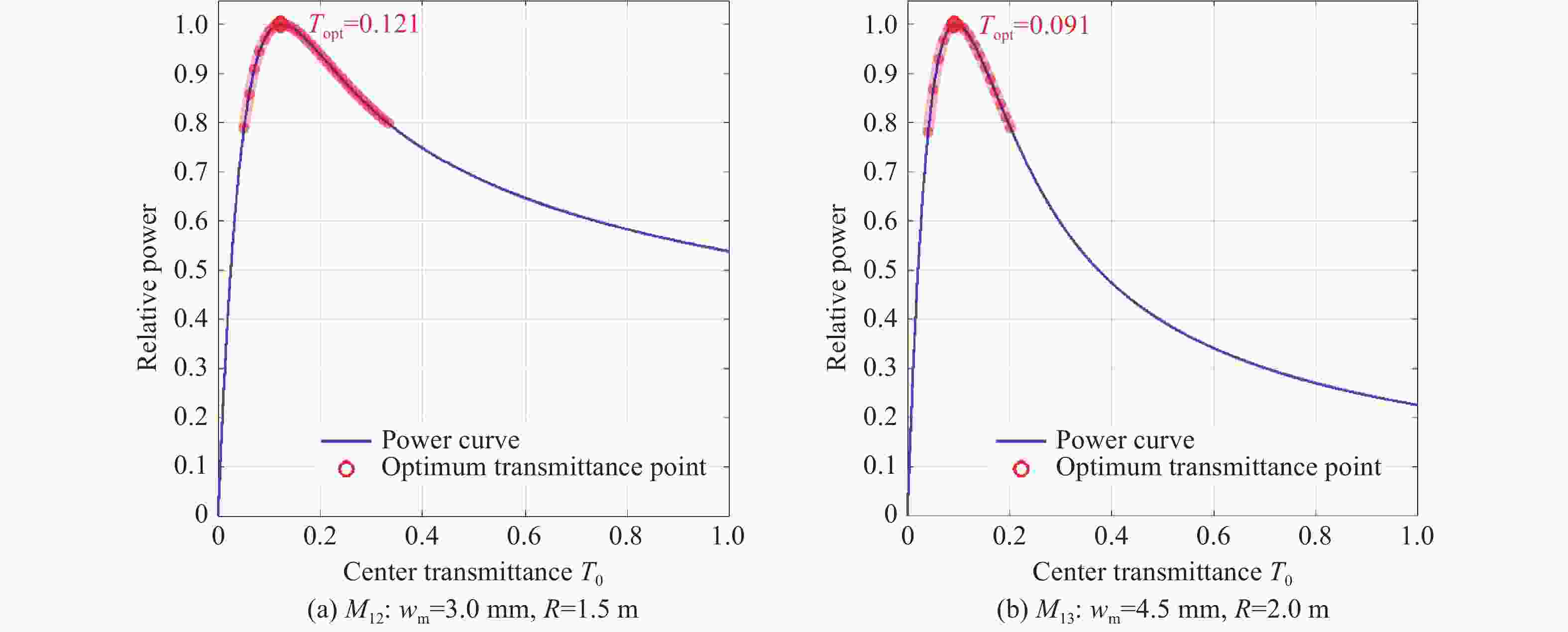 M x 2=2.09、M y 2=2.20的1064 nm高光束质量激光输出。Abstract:To achieve high-power and high-beam-quality laser output from a laser-diode side-pumped solid-state laser, this study investigates an unstable resonator incorporating a Gaussian output mirror. The boundary finite element method was utilized to analyze the effects of the resonant cavity length, Gaussian mirror membrane spot radius, and curvature radius on high-order mode suppression. The functional theory of mode loss difference was applied to determine the mode-matching range and the optimal parameters for the spot radius. Furthermore, an output power model was established to derive the theoretical optimal central transmittance for compensating loss. Based on the theoretical and simulation results, the resonator parameters were optimized, and the output beam’s mode distribution and quality were experimentally characterized using different Gaussian mirrors. Under the operational conditions of a 400 mm resonator length, 7.3 A pump current, and 100 Hz repetition frequency, the implementation of a Gaussian mirror with a 3 mm spot radius, 1.5 m curvature radius, and 17% central transmittance produced a high-quality