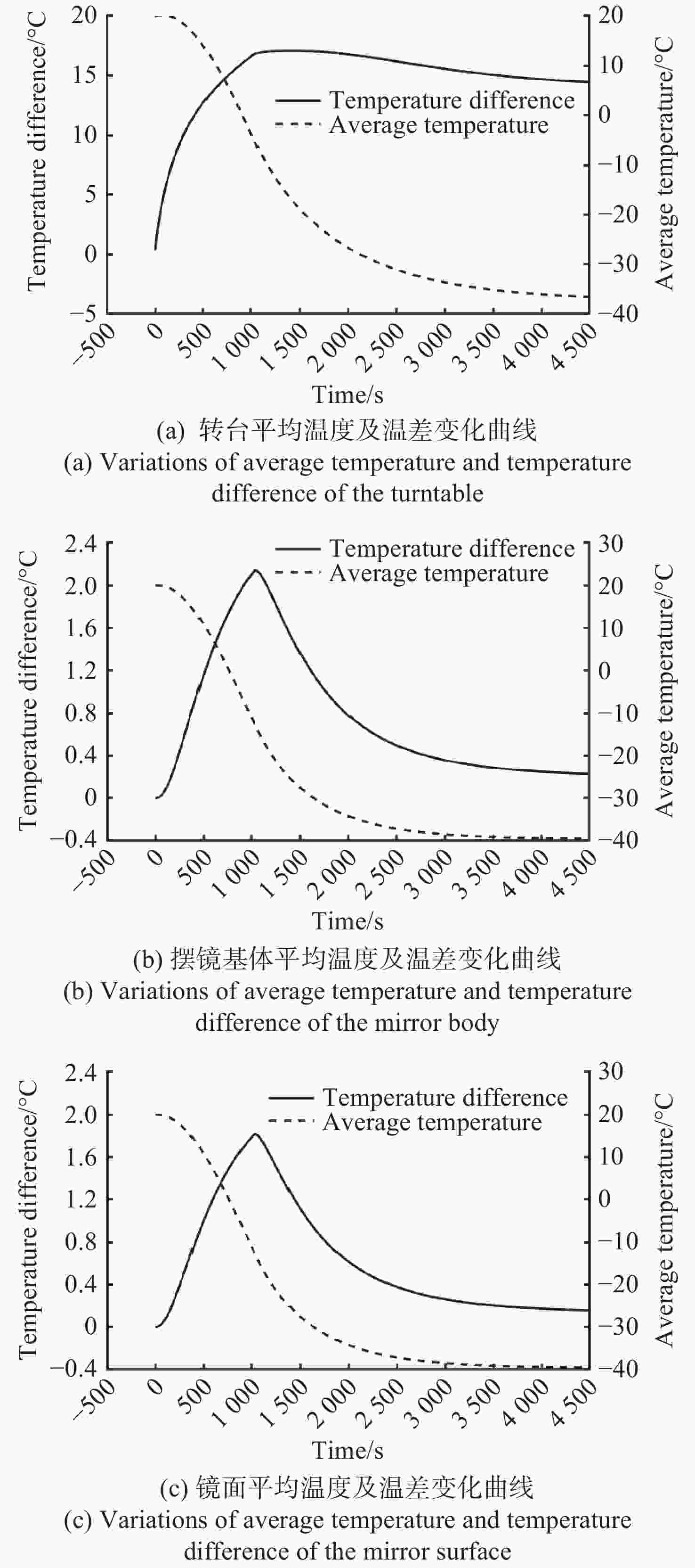 飞机起飞到抵达巡航高度的过程中,外界环境温度会发生剧烈变化,由于内部摆镜转台在步进扫描工作模式下周期性快速启停,驱动电机和轴承会持续产生热量,导致转台整体形成温度梯度,进而对摆镜面形产生影响,最终影响整个光学系统的成像质量。针对这一问题,本文提出了相应分析方法。建立摆镜转台热平衡方程,并结合实际热边界条件,构建热固耦合有限元分析模型。利用该模型,可以优化摆镜转台和粘接层的设计。本文通过分析摆镜在复杂温度环境变化及步进扫描工况条件下的面形变化规律和胶层参数的关系,得到胶层在1 mm厚度时,摆镜面形最优精度RMS为43.54 nm。在地面温箱中模拟起飞时温度变化和工作状态,检测摆镜面形,检测结果与分析方法所得仿真结果相比,误差小于10%,验证该方法可用于评估摆镜面形在温度梯度场中的动态响应特性,有利于摆镜粘接层和相关部件的设计。