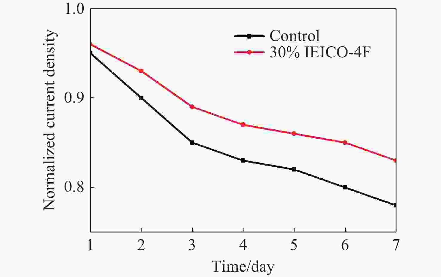 R1/Ω R2/Ω C/F Control 83.24 2.66×105 1.28×10−9 30% 77.31 2.01×105 1.34×10−9 表 3 不同IEICO-4F掺杂比例下的器件载流子迁移率