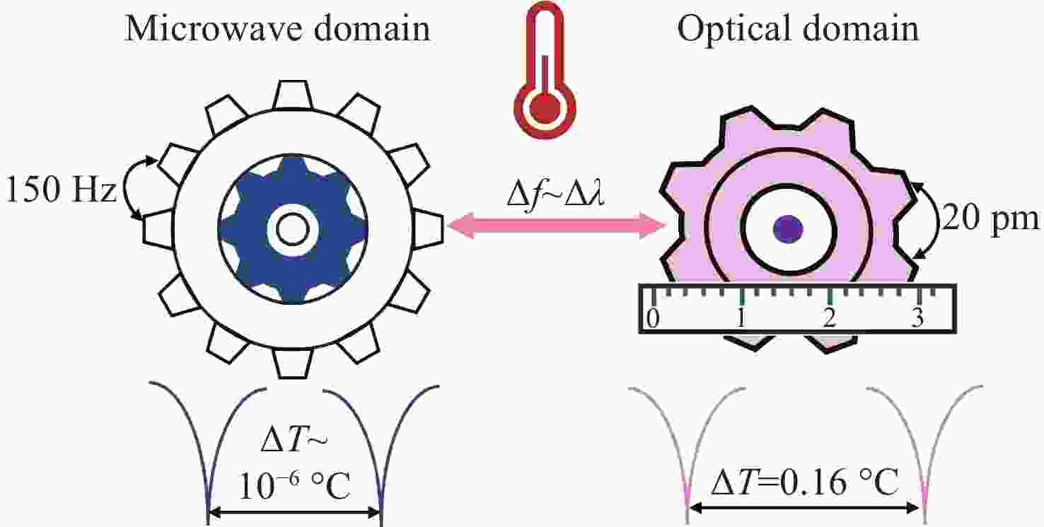 为实现高精度温度传感,本文提出了一种基于高品质因子薄膜铌酸锂微环谐振器与微波光子读取技术的温度传感器。该系统中,薄膜铌酸锂微环谐振器(线宽为2.87 pm,Q值高达105)同时作为温度感知单元和微波光子滤波器的核心处理部件,利用热光效应将温度变化转换为光学谐振波长偏移,并创新性地借助微波光子技术将其线性映射为微波通带频率变化,采用矢量网络分析仪对微波频率响应进行精确探测,通过高精度频率响应变化实现温度测量,最终建立了温度与频率偏移量之间的定量关系模型。与传统直接检测光学波长变化的方法相比,微波光子学读取技术通过将微小的光学谐振波长偏移量线性地转换为微波通带中心频率的变化,突破了光谱仪固有的波长检测分辨率限制。实验结果表明,传感器灵敏度达27 MHz/°C,分辨率可达0.002 °C,在0.01 °C实验温度变化条件下,保持良好的线性响应。本研究有效解决了传统光学测温中灵敏度与分辨率之间的权衡问题,为片上集成高精度温度传感提供了新方案。