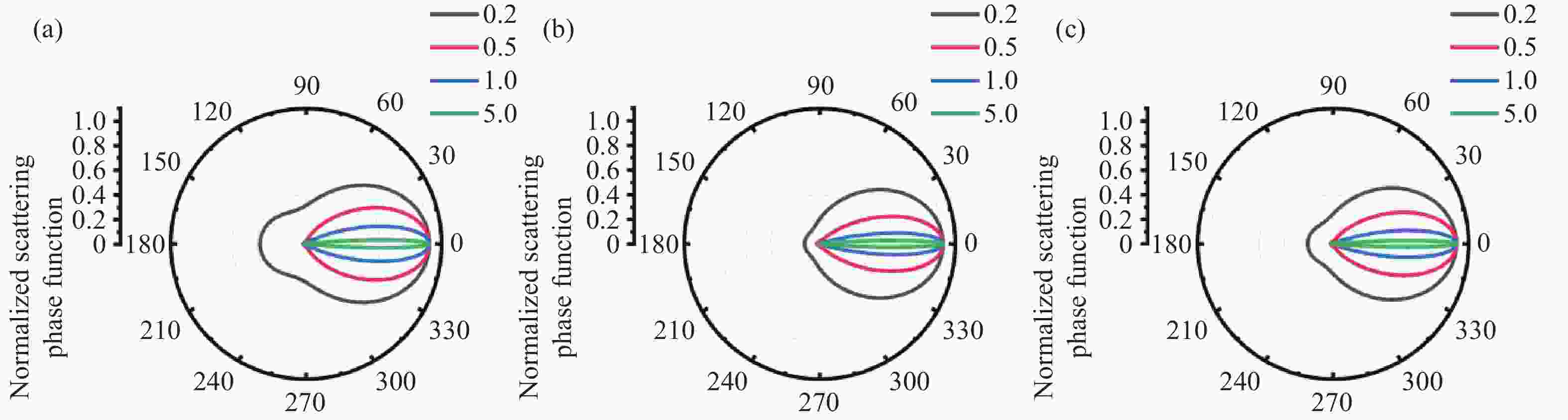 能见度蓝光(470 nm) $ \mu $ $ { \omega } $ $ {g} $ 1000 0.075 0.840 0.802 800 0.094 0.834 0.798 600 0.125 0.827 0.793 400 0.187 0.817 0.786 -
