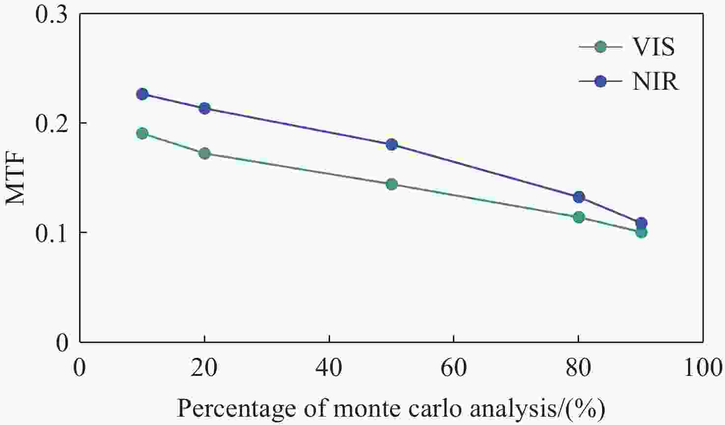 Parameters Range(±) Radius (fringes) 2 Thickness (mm) 0.02 Surface decenter (mm) 0.02 Element decenter (mm) 0.02 Element tilt (°) 0.02 Refractive index 0.0005 Abbe number (%) 0.5 表 3 关键实测指标对比