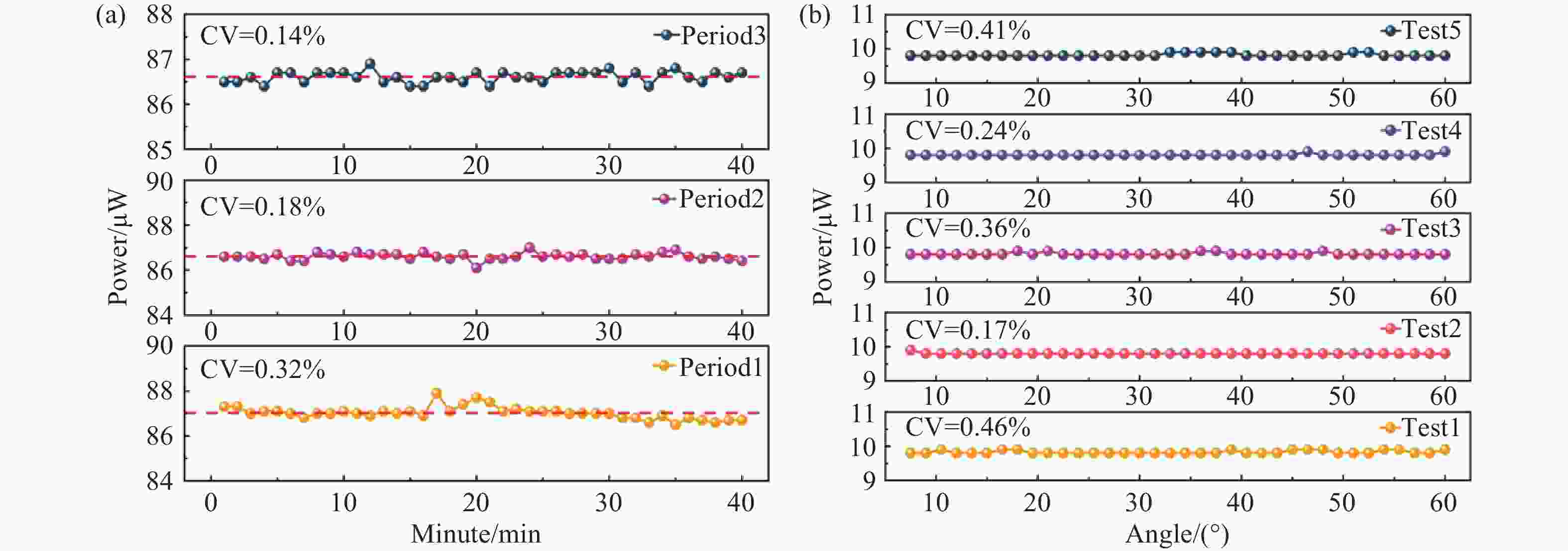 为满足表面等离激元纳米结构的微区域光学响应研究需求,本文研制了一套基于同轴转臂的微区域角分辨光谱测量系统。该系统设计了一种基于有限共轭构型的微区域远程激发与收集光路模型,实现了以32 μm直径的微区域光斑入射;搭建了基于同轴转臂的角分辨机械系统,实现了6.9° 至90° 的大范围定向角度激发。性能测试表明,系统稳定性高,最小角度分辨率达0.12°。通过对一维光栅和二维周期纳米结构的反射光谱采集实验,进一步验证了系统的可靠性,证明了微区域光斑所带来的优势,为微纳结构的角分辨光谱表征提供了有效的技术手段。