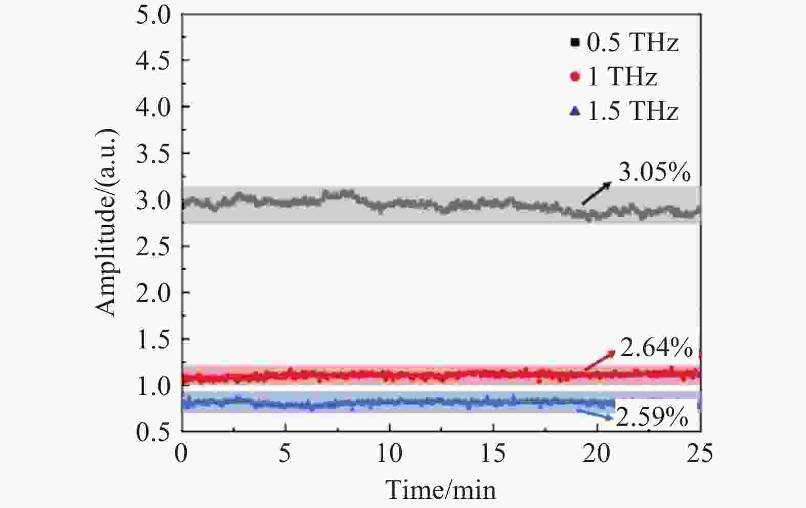 图 4  输出频率0.5 THz、1 THz、1.5 THz时太赫兹波稳定性