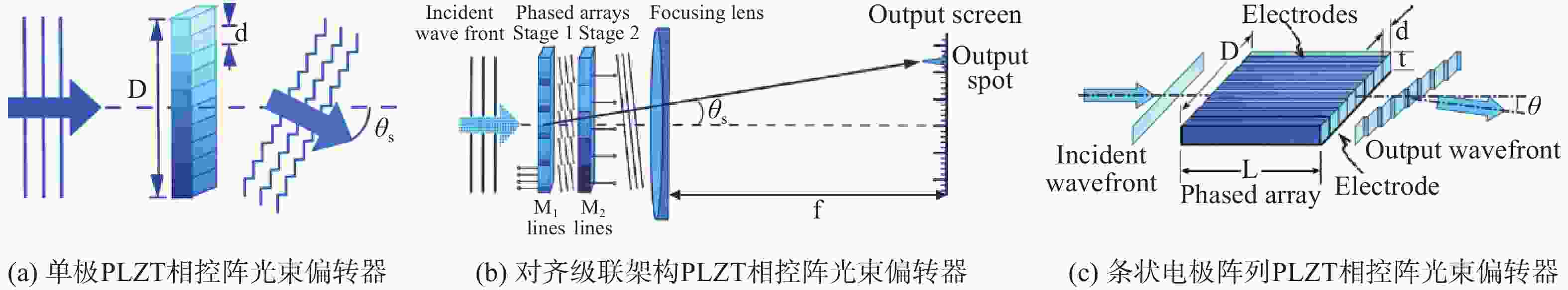 StructureElectro-optic coefficient 31×10−12(m/V) 1.5-2.5×10−16(m2/V2) 10−14~10−12(m2/V2) Deflection sensitivity 59.3 mrad/K[37] 0.13 mrad/kV/mm[40] 6.4 mrad/kV/mm[45] 29.07 mrad/kV/mm[50] −-- 500 mrad/kV/mm[59] Driving voltage −-- 1000 V ~20 V 100-1000 V <100 V[56] ~100 V Response speed < 1 kHz GHz MHz GHz MHz 700 kHz-GHz Deflection accuracy 1-10 μrad 10−2μrad[43] 10-100 μrad μrad μrad Whether meet the requirements of space laser communication Most scenarios are not suitable, but extreme environment Difficult to meet low-power consumption requirement Have the potential to meet the requirement, but the angle sensitivity need to be overcome Difficult to meet low-power consumption requirement Have the potential to meet the requirement, but light scattering needs to be overcome Have the potential to meet the requirements, but the impact of temperature sensitivity and optical inhomogeneity need to be overcome -