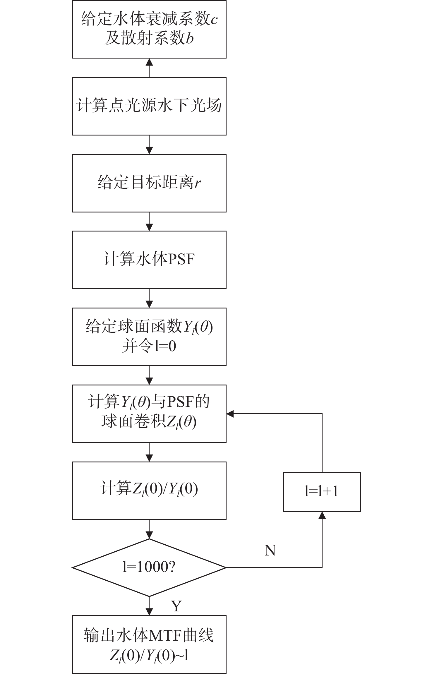 水体对光线的多次散射会形成水下光场,水下光场的存在使水下光电成像质量显著恶化,为了对水下光电图像质量退化进行定量分析,需要研究水下光场分布,建立严格的水下图像传输模型。假定水体体散射函数为球形对称,首先计算出理想点光源的水下光场分布,然后通过沿路径的亮度积分得到水体点扩展函数,最后借助于球谐函数与球面卷积等数学工具推导出球面空间中的水体调制传递函数。在已知水体固有光学参数的条件下,给出了水体调制传递函数以及对比度极限因子的图象。该算法模型解决了球形体散射函数条件下的水体调制传递函数推导问题,为解决非球形体散射函数及动态光场条件下水体调制传递函数的推导问题奠定了基础。
