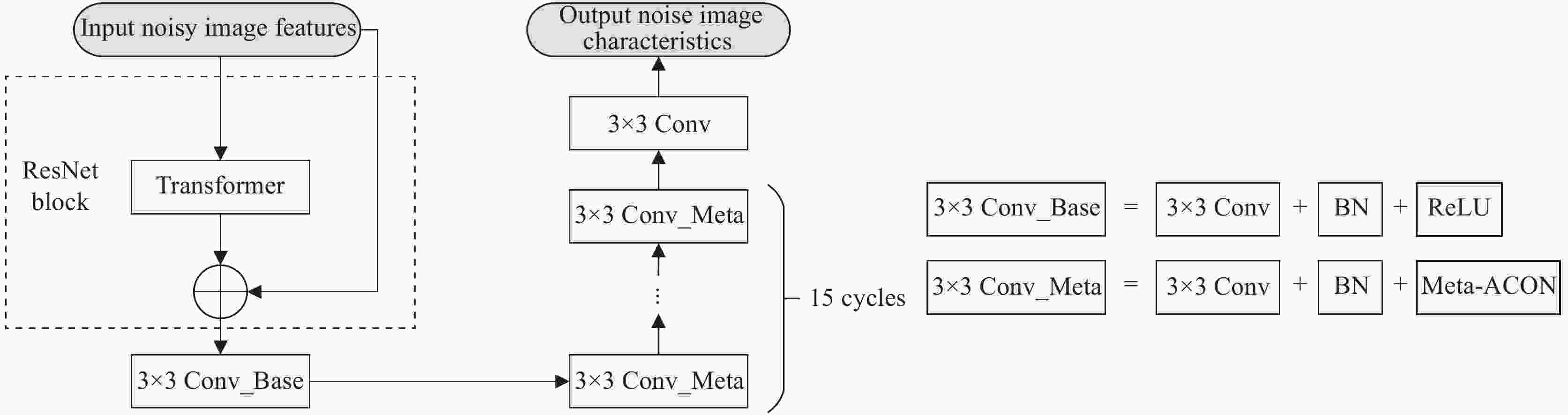 25.2021 ,验证了该算法在SAR去噪领域的良好泛化性。上述结果表明,所提出的算法不仅能够有效降低相干斑噪声,还能有效保留SAR图像中的关键信息特征,从而在实际应用中显著提高图像质量和可用性。Abstract:In the field of image processing, the analysis of Synthetic Aperture Radar (SAR) images is crucial due to its broad range of applications. However, SAR images are often affected by coherent speckle noise, which significantly degrades image quality. Traditional denoising methods, typically based on filter techniques, often face challenges related to inefficiency and limited adaptability. To address these limitations, this study proposes a novel SAR image denoising algorithm based on an enhanced residual network architecture, with the objective of enhancing the utility of SAR imagery in complex electromagnetic environments. The proposed algorithm integrates residual network modules, which directly process the noisy input images to generate denoised outputs. This approach not only reduces computational complexity but also mitigates the difficulties associated with model training. By combining the Transformer module with the residual block, the algorithm enhances the network's ability to extract global features, offering superior feature extraction capabilities compared to CNN-based residual modules. Additionally, the algorithm employs the adaptive activation function Meta-ACON, which dynamically adjusts the activation patterns of neurons, thereby improving the network's feature extraction efficiency. The effectiveness of the proposed denoising method is empirically validated using real SAR images from the RSOD dataset. The proposed algorithm exhibits remarkable performance in terms of EPI, SSIM, and ENL, while achieving a substantial enhancement in PSNR when compared to traditional and deep learning-based algorithms. The PSNR performance is enhanced by over twofold. Moreover, the evaluation of the MSTAR SAR dataset substantiates the algorithm's robustness and applicability in SAR denoising tasks, with a PSNR of