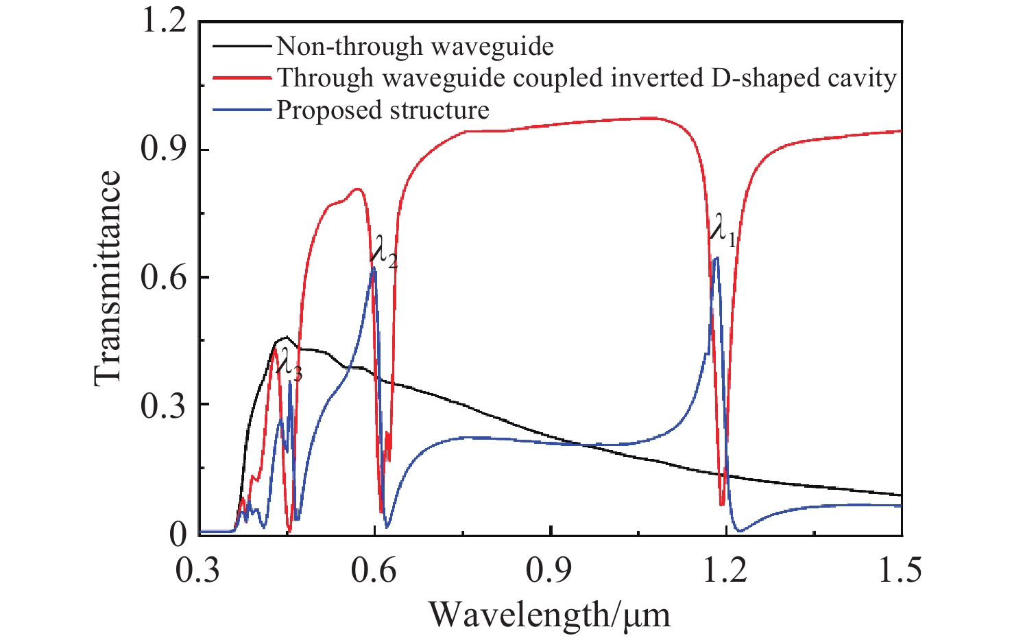 Abstract:A plasmonics waveguide structure that consist of a non-through metal–insulator–metal (MIM) waveguide coupled with a D-shaped cavity was designed. And the transmission properties, magnetic field distribution, and refractive index sensing functionality were simulated using the finite element method (FEM). A multi-Fano resonance phenomenon was clearly observable in the transmission spectra. The Fano resonances observed in the proposed structure arise from the interaction between the discrete states of the D-shaped resonant cavity and the continuum state of the non-through MIM waveguide. The influence of structural parameters on Fano resonance modulation was investigated through systematic parameter adjustments. Additionally, the refractive index sensing properties, based on the Fano resonance, were investigated by varying the refractive index of the MIM waveguide's insulator layer. A maximum sensitivity and FOM of