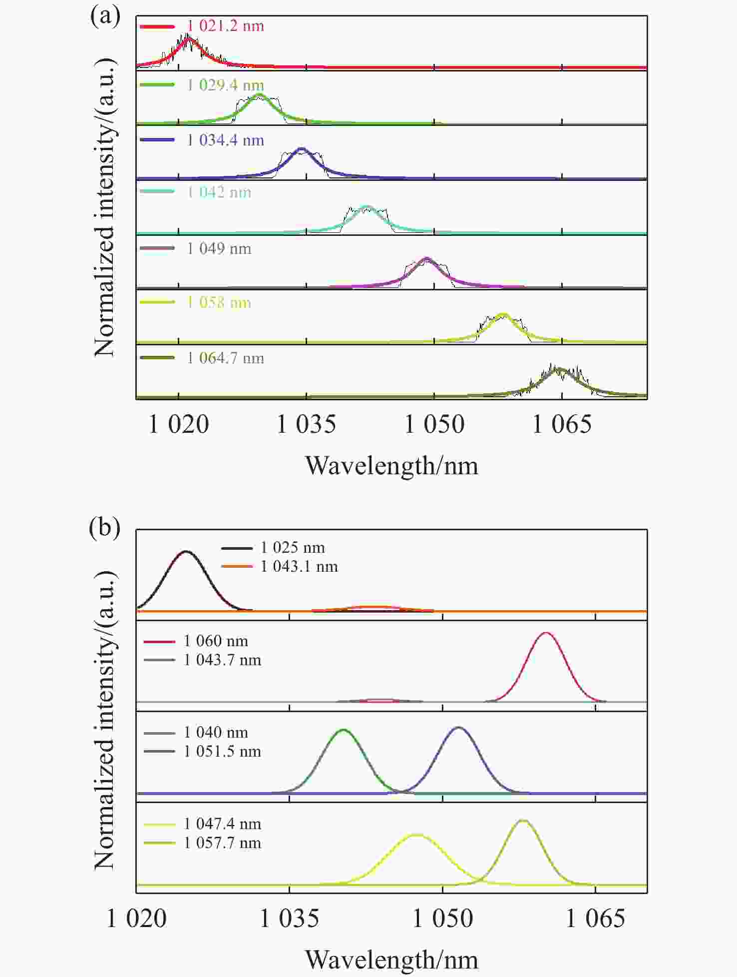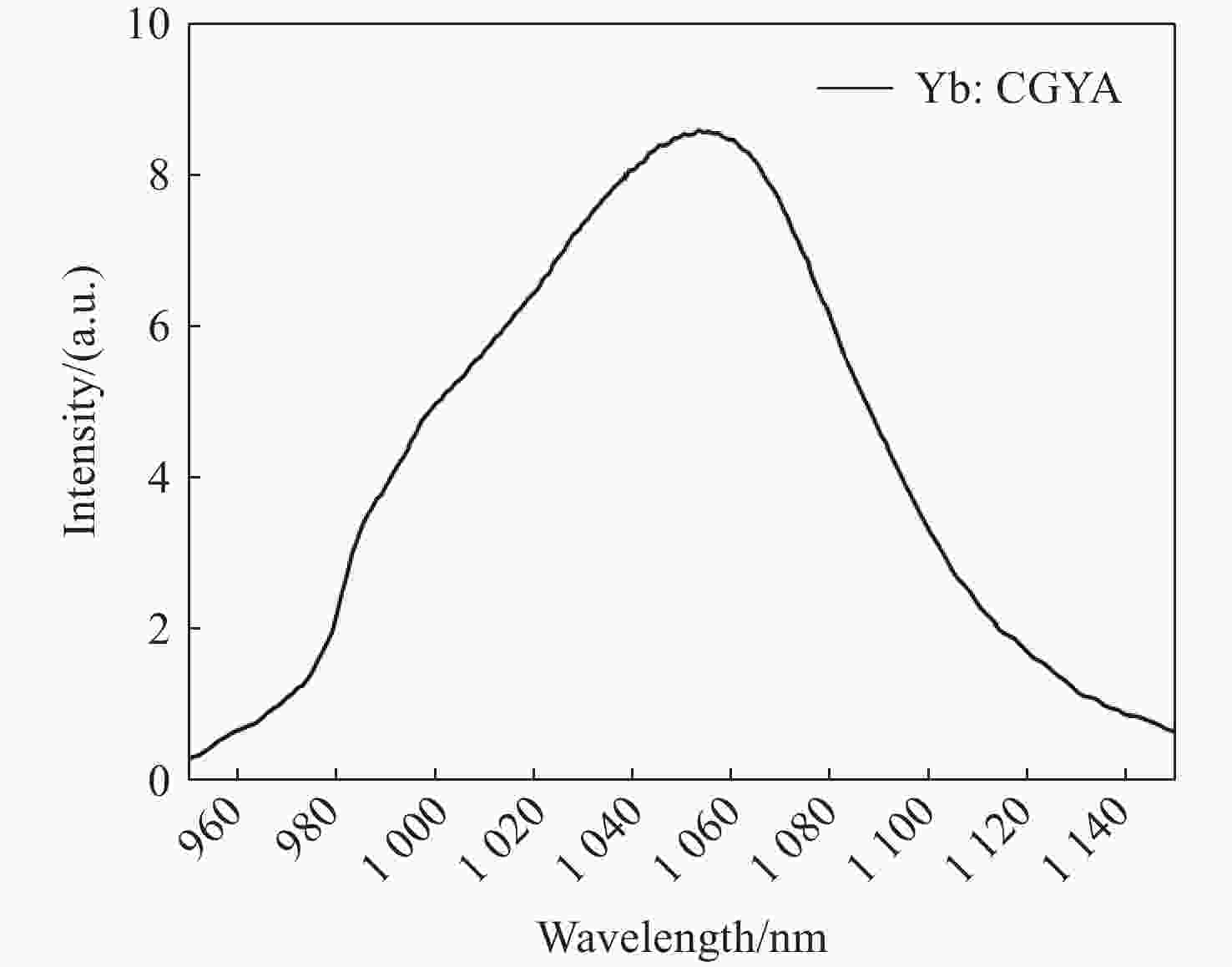 1053 nm,对应的半峰全宽为 93 nm。通过使用双折射滤波片实现了从1017 nm至1073 nm的可调谐激光输出,这是迄今为止在短腔中报道的最宽调谐范围。这种紧凑型激光器为其在1 μm波段附近的应用提供了巨大潜力。Abstract:A Yb:CaGd0.33Y0.625AlO4 (Yb:CGYA) laser crystal of high optical quality has been successfully synthesized via the Czochralski method. The introduction of Gd3+ ions preserves the original structure and efficiently generates inhomogeneous broadening of the Yb3+ ion emission spectra. The fluorescence emission peak wavelength of the Yb:CGYA crystal is