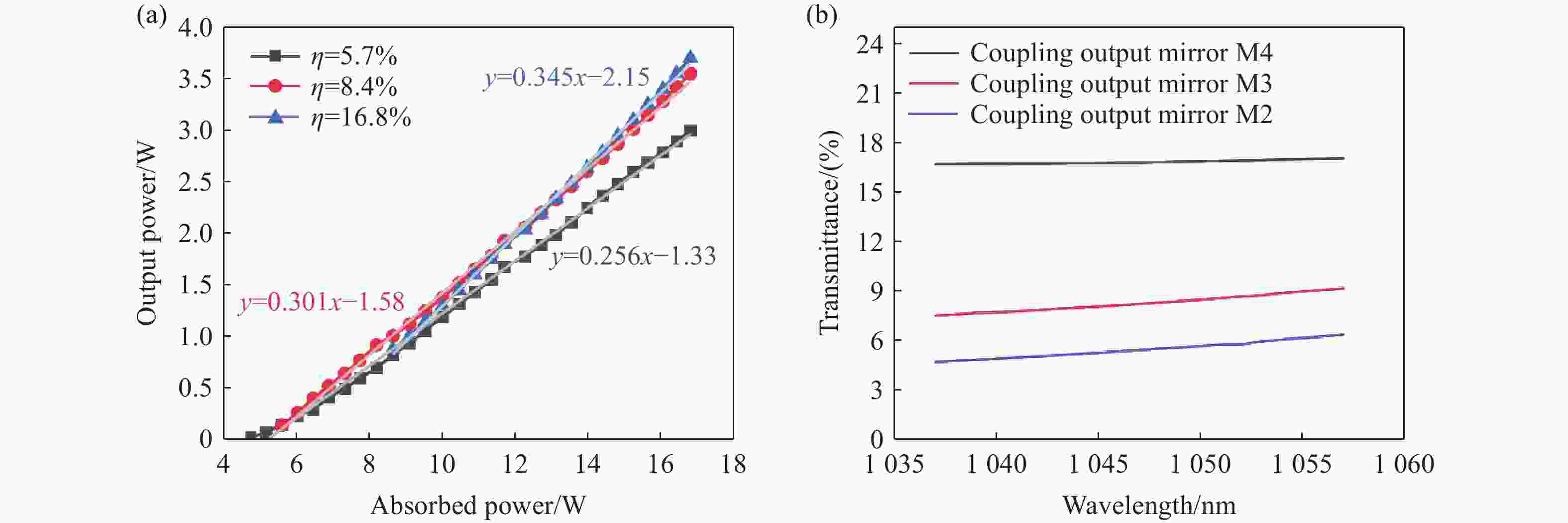 Spherical coated with high-reflection film at1049 nm (η>99.9%).OC M2: Flat mirror, η=5.7% ( 1049 nm), Reflectance of 96% at 976 nm.