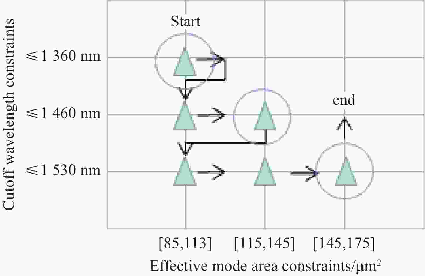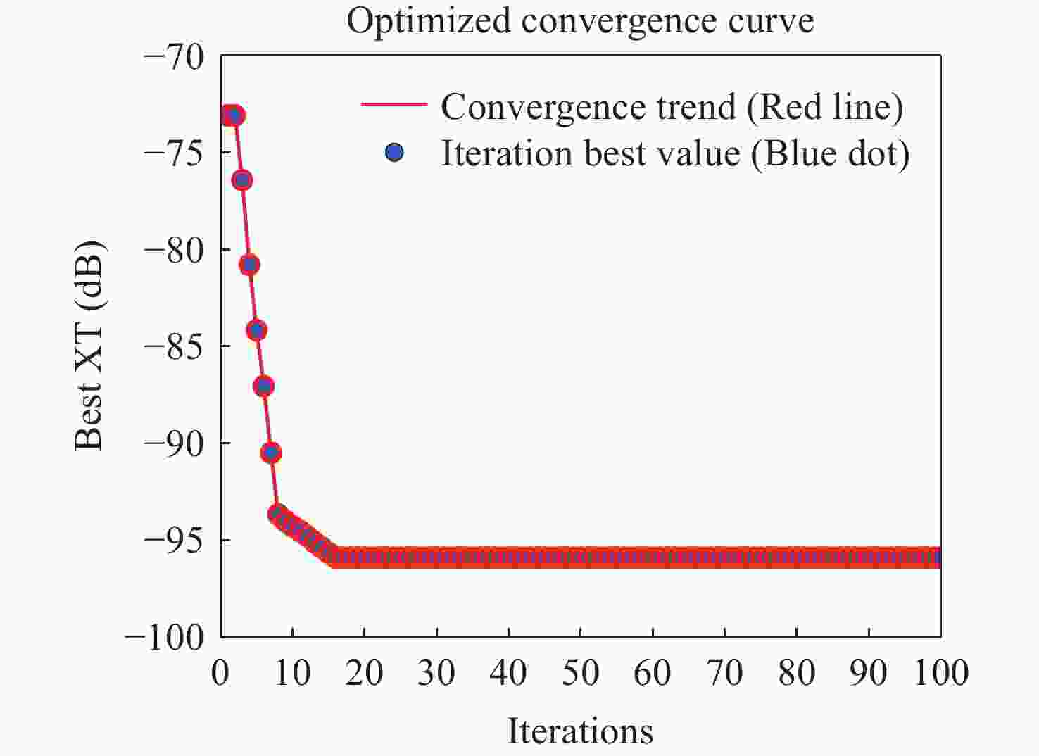 为实现光纤结构参数的全面、高效及多目标精确优化,并进一步提升光通信系统的传输容量,本文引入粒子群优化算法(PSO)代替传统经验设计或局部扫描方法,设计一种基于沟槽辅助结构的同质弱耦合七芯光纤。在建立一个包含色散、截止波长、有效模场面积和涂层损耗等约束条件的多目标适应度函数的基础上,利用粒子群优化算法进行全局搜索,在标准尺寸约束下精确确定光纤的最佳结构参数。仿真结果表明:在光纤纤芯间距为45 μm时,优化后的光纤在1550 nm波长处实现了低于−90 dB/km的超低芯间串扰,有效解决了多芯光纤中串扰抑制与空间利用率之间的冲突,证明了粒子群算法在复杂光纤结构设计中的高效性与可靠性,为超大容量光纤通信系统的研发与制造提供了重要的理论依据和技术支持。