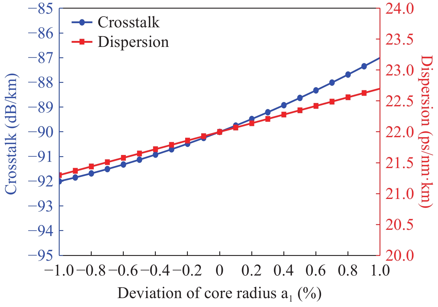 Figure 15.  Variations of crosstalk and dispersion under ±1% deviation of core radius