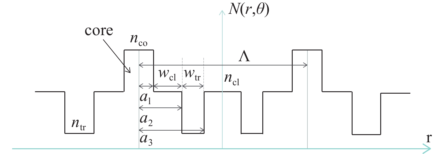 • Figure 1.  Schematic of the optimized trench-assisted fiber