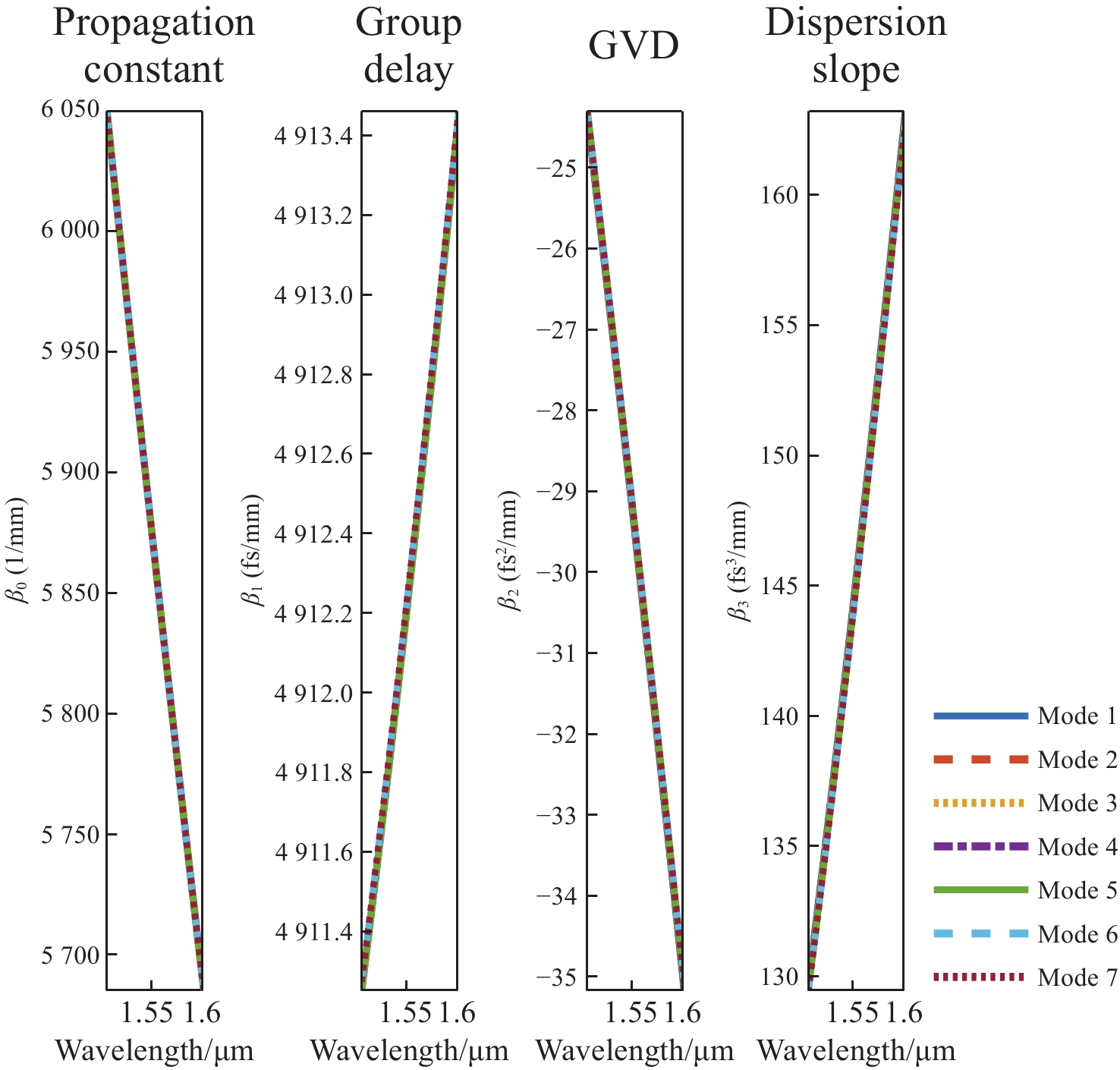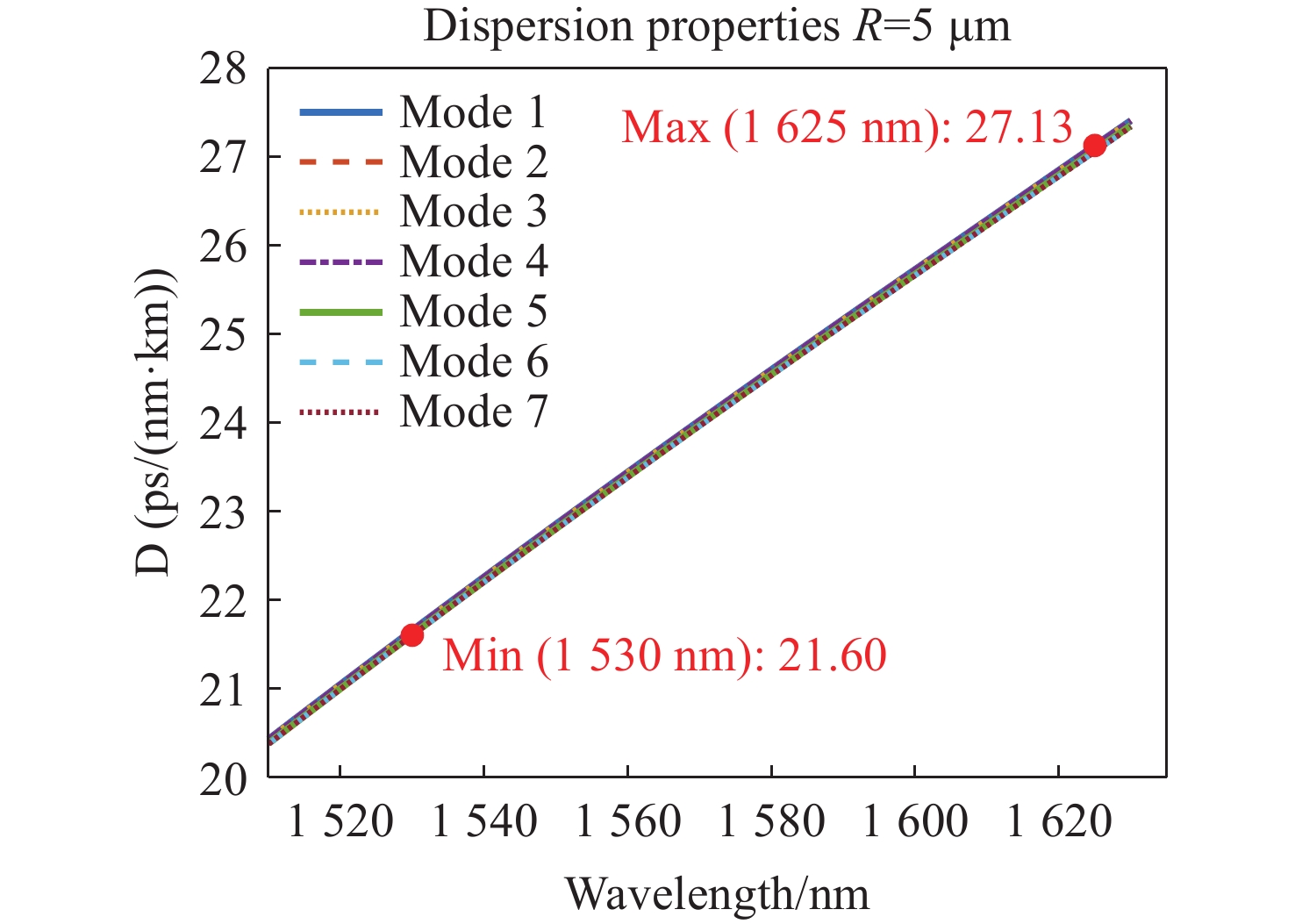 Figure 7.  Dispersion characteristics of maximum parameter combination optical fiber mode