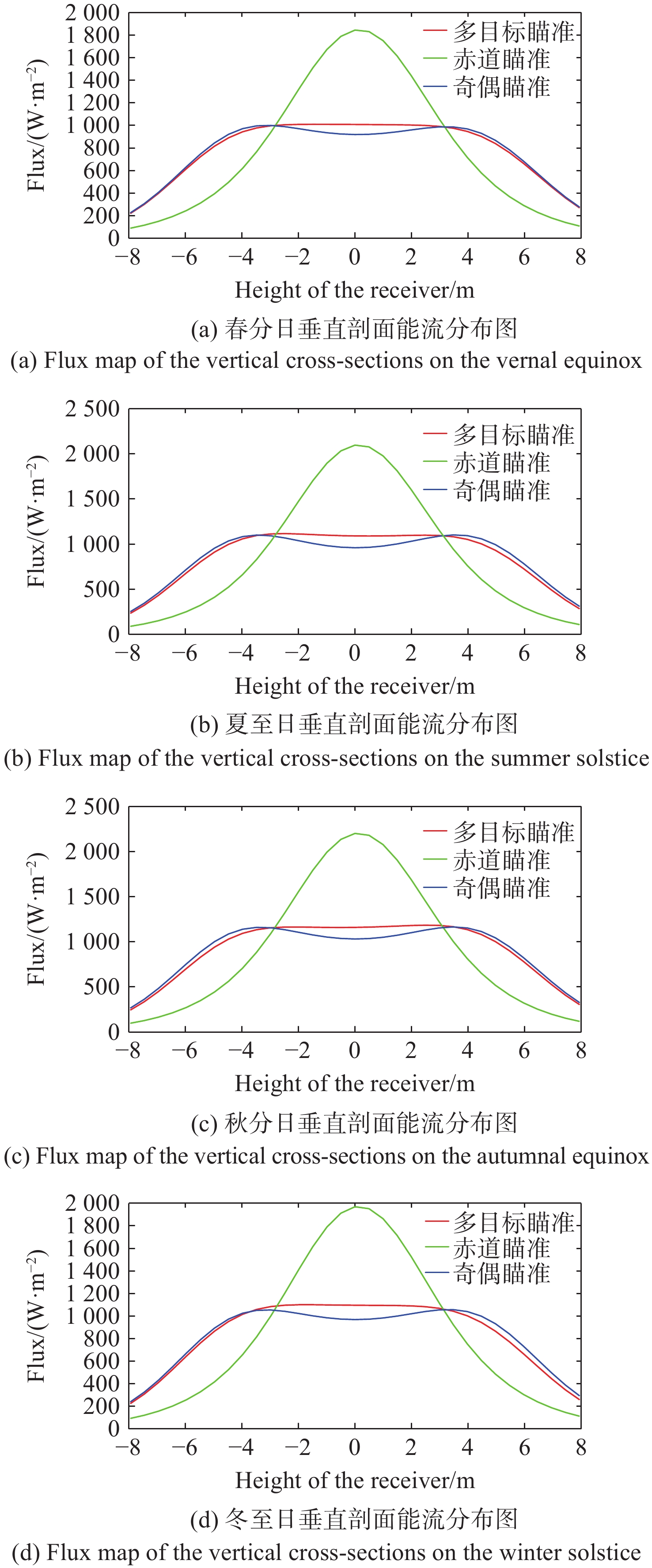 To achieve uniform heat flux distribution on the receiver surface, an optimization method for heliostat aiming strategy in solar power tower station is proposed. First, the heliostat field is divided into zones based on the calculated instantaneous optical efficiency of heliostats throughout the entire field, and different aiming factors are designed for heliostats in different zones. Then, the spot size of each heliostat is calculated according to the aiming factor, and the relative spot size is determined by the ratio of spot size to receiver size, thereby planning the aiming point distribution. Finally, a genetic algorithm is employed to optimize the heliostat aiming point distribution, achieving uniform heat flux distribution on the receiver surface. Taking a hundred-megawatt-scale solar power tower station as an example, the heliostat aiming strategy is optimized. Under typical spring equinox conditions, the peak heat flux density on the receiver surface is reduced from 1.94 MW/m2 with equatorial aiming to 1.01 MW/m2, improving uniformity by 53.29% while reducing the spillage factor by 0.86%. This ensures efficient and safe operation of the receiver while maintaining high interception efficiency.