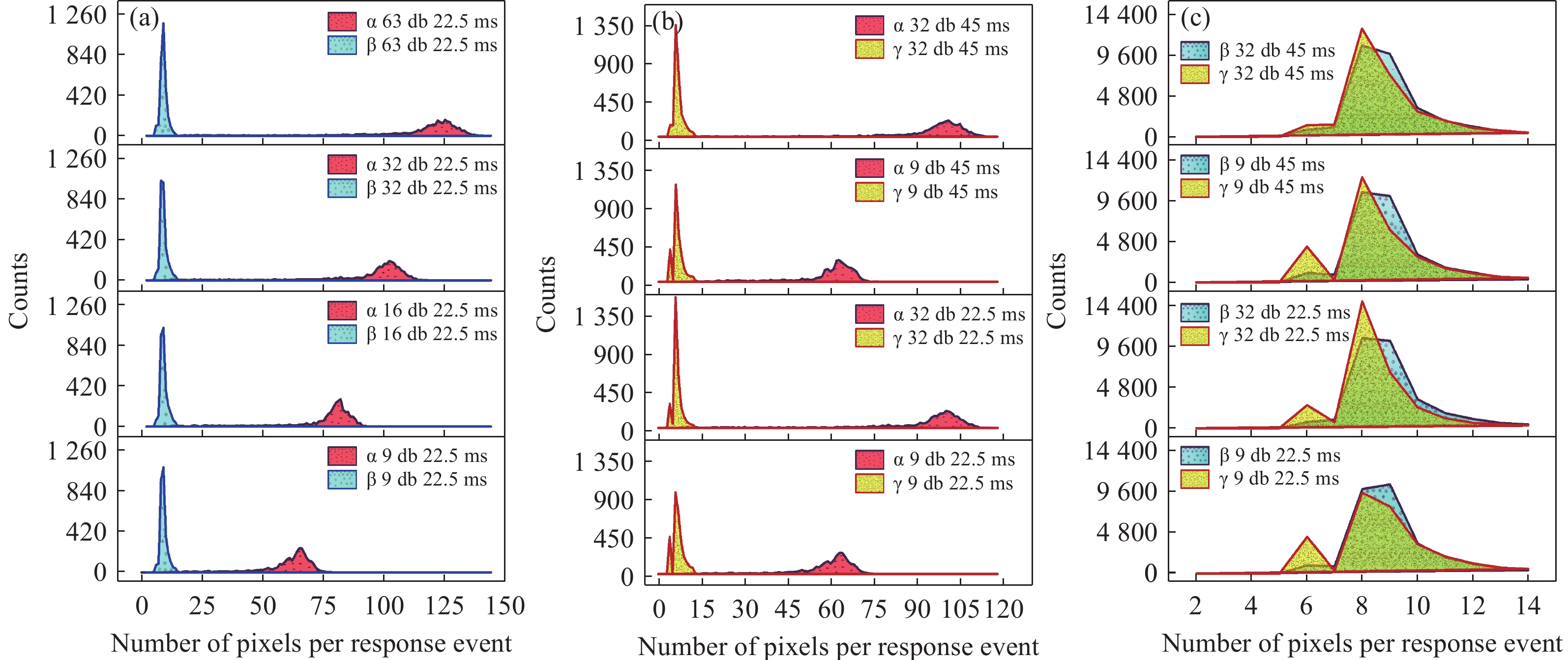 To reduce pulse pile-up and improve ionizing particle discrimination efficiency, we use a CMOS active pixel sensor to analyze ionizing particle optical responses and propose morphology-based discrimination. By comparing the characteristics of response events of different ionizing particles, the regulatory mechanisms influenced by gain and integration time are elucidated, and the discrimination effectiveness is verified. Results show α events differ significantly from β and γ events in pixel count, mean pixel value, rectangularity, convexity, and compactness. β and γ events are similar in pixel count, rectangularity, and convexity, but differ in mean pixel value or compactness. Using pixel count, α events were identified with over 99% accuracy. β and γ events were discriminated by mean pixel value with over 82% accuracy. The results provide a new method and basis for ionizing particle identification in mixed radiation fields. It supports nuclear particle discrimination and noise mitigation, providing new approaches and theoretical guidance.