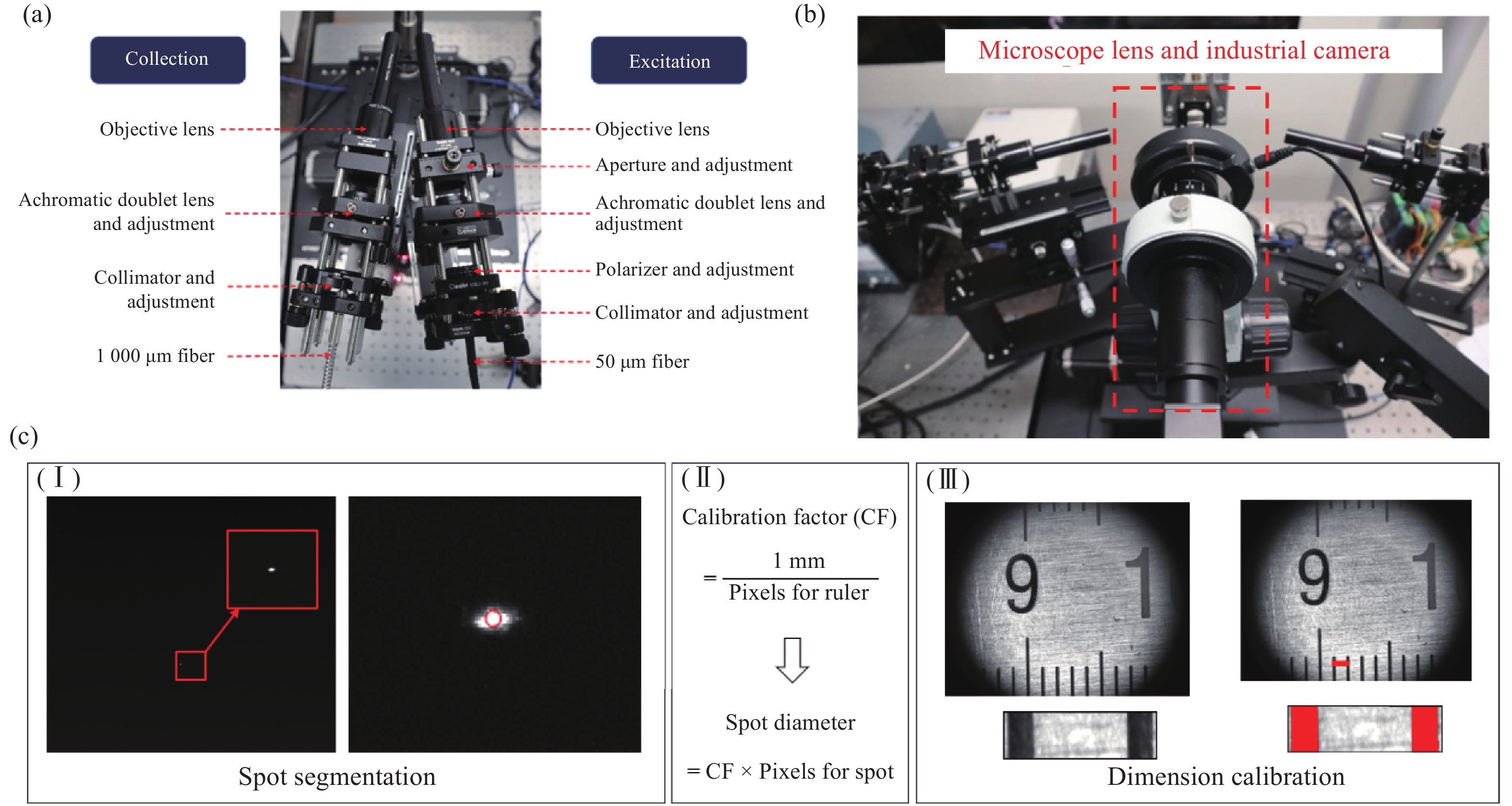 To study the optical response of micro-area in surface plasmon nanostructures, we develop a micro-area angle-resolved spectroscopy measurement system based on a coaxial rotating arm. The system adopts a micro-area remote excitation and collection optical path model based on a finite conjugate configuration, enabling an incident micro-area spot with a diameter of 32 μm. In addition, an angle-resolved mechanical system based on a coaxial rotating arm is constructed, realizing large-range directional angular excitation from 6.9° to 90°. Performance tests show that the system exhibits high stability, with a minimum angular resolution of 0.12°. Through the reflection spectrum collection experiments on one-dimensional gratings and two-dimensional periodic nanostructures, the reliability of the system is further verified. The results demonstrate the advantages of the micro-area spot, which provide an effective technical means for the angle-resolved spectroscopy characterization of micro and nanostructures.