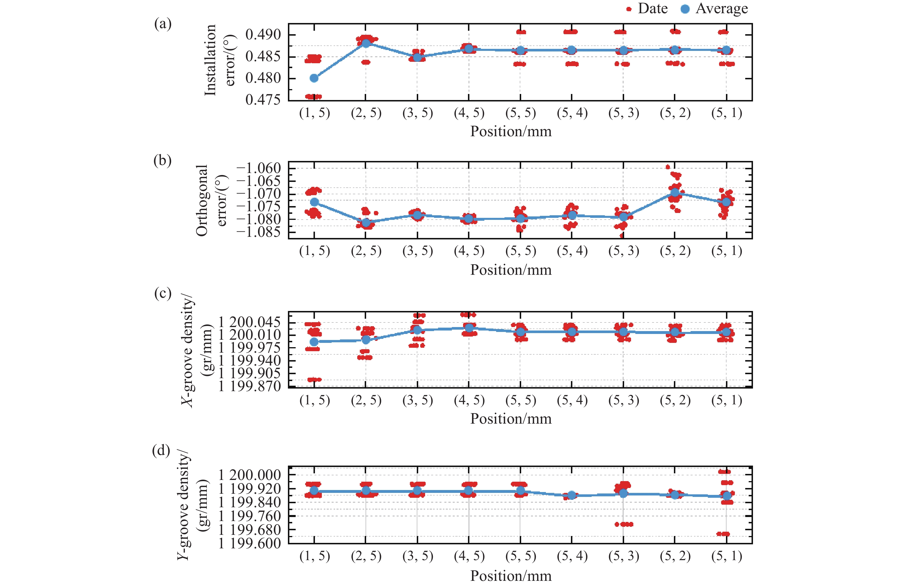 The two-dimensional grating serves as a critical component in plane grating interferometers for achieving high-precision multidimensional displacement measurements. The calibration of grating groove density and orthogonality error of grating grooves not only improves the positioning accuracy of grating interferometers but also provides essential feedback for optimizing two-dimensional grating fabrication. This study proposes a method for simultaneous calibration of these parameters using orthogonal heterodyne laser interferometry. A two-dimensional grating interferometer is built with the grating to be measured, and a biaxial laser interferometer provides a displacement reference for it. The phase mapping relationship between grating interference and laser interference is established. The interference phase information obtained by any two displacements can simultaneously solve the above three parameters and obtain the grating installation error. The feasibility of the proposed method is verified by using a 1200 gr/mm two-dimensional grating. The standard deviation of the grating groove density in the X and Y directions is 0.012 gr/mm and 0.014 gr/mm, respectively. The standard deviation of the orthogonality error of grating grooves is 0.004°, and the standard deviation of the installation error is 0.002°. Compared with the atomic force microscope method, the consistency of the grating groove density in the X and Y directions is better than 0.03 gr/mm and 0.06 gr/mm, and the orthogonality error of grating grooves is better than 0.008°. The experimental results show that the proposed method can be simply and efficiently applied to the calibration of the grating line parameters of the two-dimensional grating.
