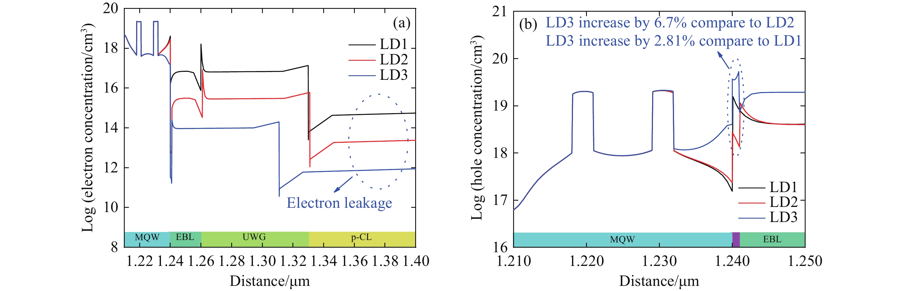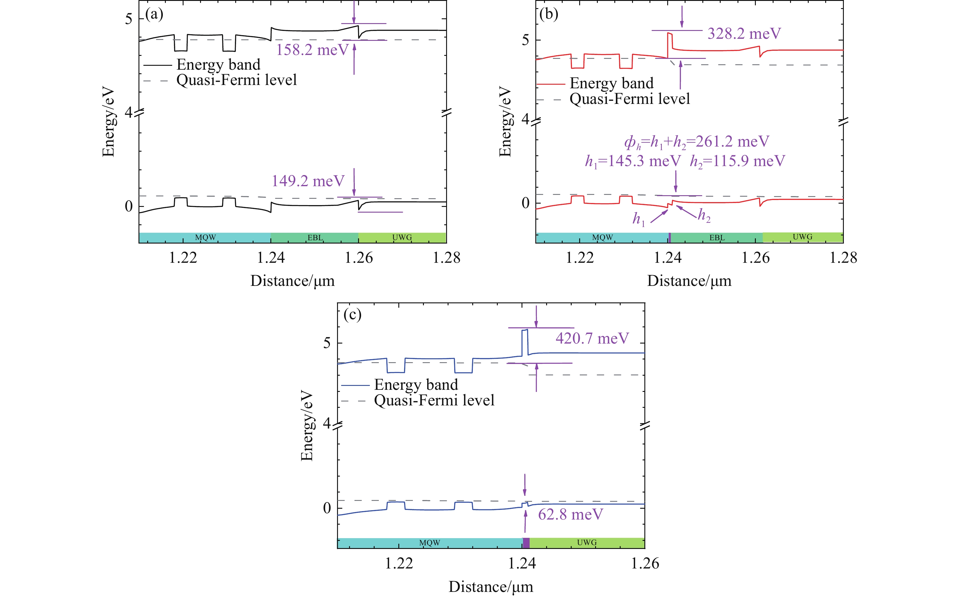 AlGaN-based deep-ultraviolet (DUV) laser diodes (LDs) face performance challenges due to electron leakage and poor hole injection which is often worsened by polarization effects from conventional electron blocking layers (EBLs). To overcome these limitations, we propose an EBL-free DUV LD design incorporating a 1-nm undoped Al0.8Ga0.2N thin strip layer after the last quantum barrier. Using PICS3D simulations, we evaluate the optical and electrical characteristics. Results show a significant increase in effective electron barrier height (from 158.2 meV to 420.7 meV) and a reduction in hole barrier height (from 149.2 meV to 62.8 meV), which enhance hole injection and reduce electron leakage. The optimized structure (LD3) achieves a 14% increase in output power, improved slope efficiency (1.85 W/A), and lower threshold current. This design also reduces the quantum confined Stark effect and forms dual hole accumulation regions, improving recombination efficiency.